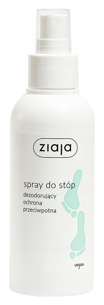 Спрей для ніг від ZIAJA. Це веганський продукт. Ідеально підходить для спортсменів і людей, які борються з мікозом стоп. Його дія заснована на анісової кислоти і натрієвої солі левулінової кислоти. Ефективно зменшує надмірну пітливість ніг і запобігає утворенню неприємного запаху. При регулярному застосуванні забезпечує протигрибковий і антибактеріальний захист. Крім того, ефективно тонізує та забезпечує тривале відчуття свіжості. Косметика має спеціальну формулу, яка не залишає слідів на одязі. Він доступний в упаковці по 100 мл з розпилювачем.
