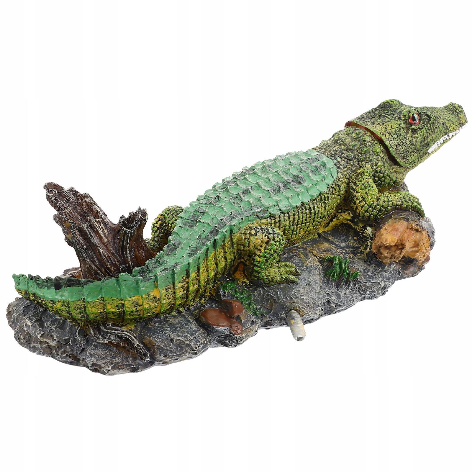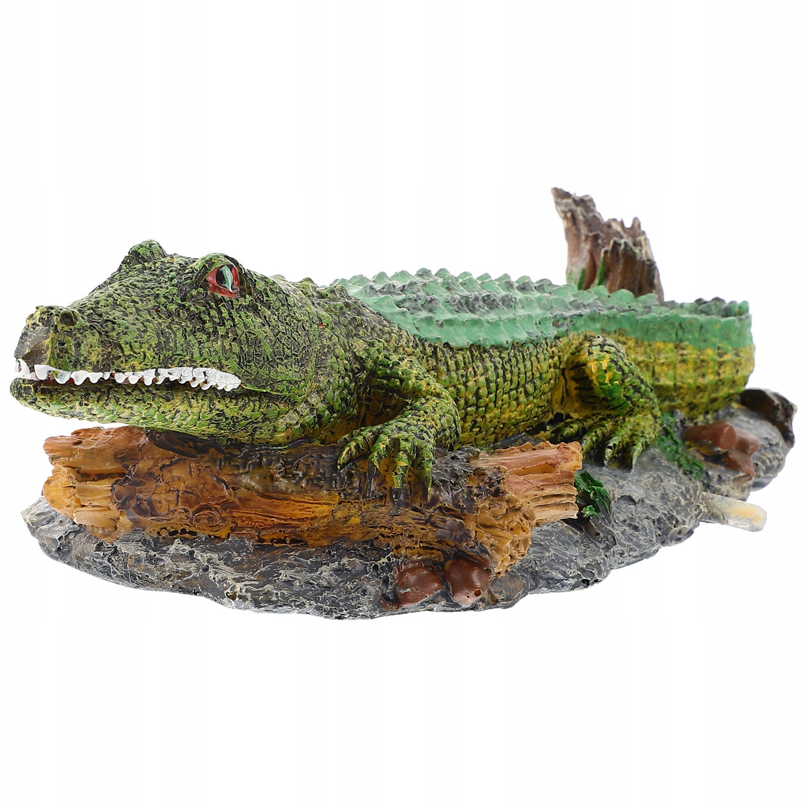 ZIELONA ŻYWA STATUETKA KROKODYLA Z ŻYWICY DO AKWARIUM