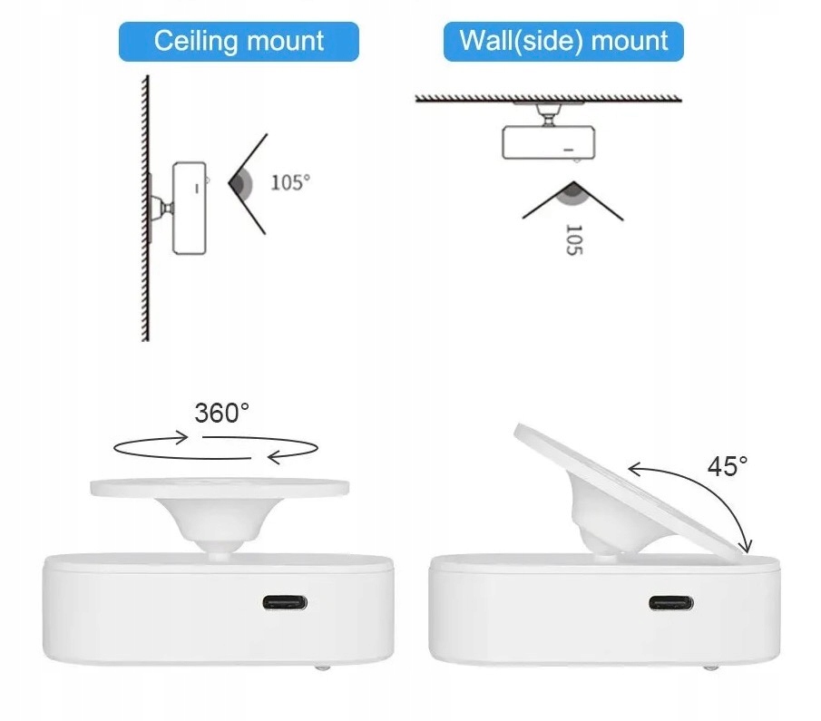 - Встановлення на стелі або встановленні на стіні , де ви можете зробити джерело живлення, потребує джерела живлення 5В, наприклад, телефонний зарядний пристрій,