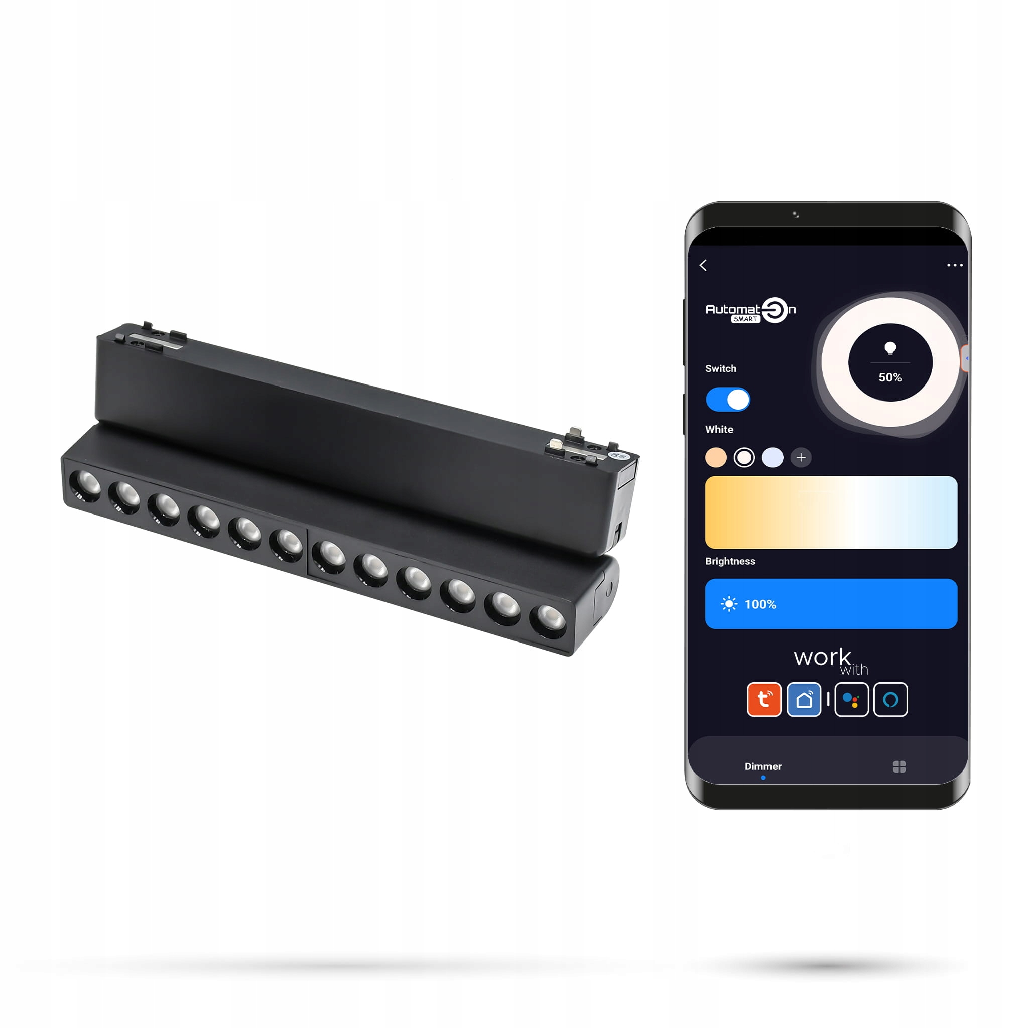 Магнітні залізничні системи Тонка доріжка та Fiberflex дозволяють керувати освітленням за допомогою смартфона, а також кнопки та пілота сцени Zigbee 3.0. Система підтримується безкоштовними спеціалізованими програмами tyua або smartlife . Програми доступні для смартфонів з операційними системами Android та iOS. Освітлення також можна керувати за допомогою голосового помічника, таких як, Google Home або Amazon Alexa .