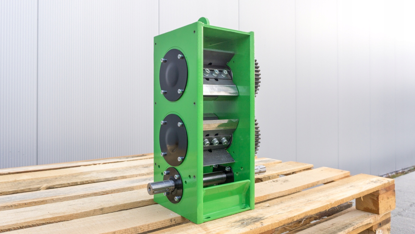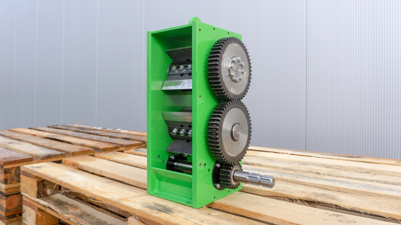 Двох роликовий різальний механізм для гілок та інших деревних відходів.