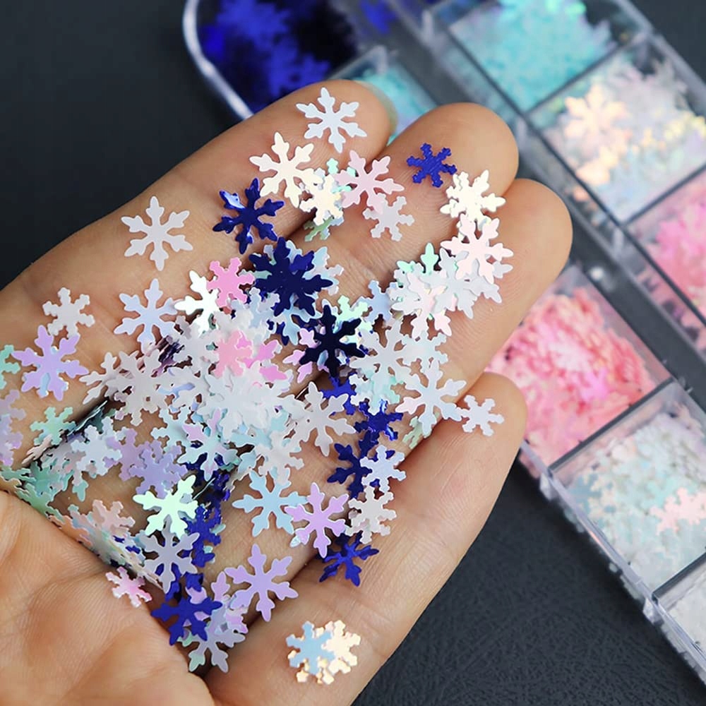✨Плоскі двосторонні прикраси для нігтів у формі сніжинок. Вони ідеально поєднуються з кольорами гібридних лаків, УФ-гелів, акрилу та звичайних лаків для нігтів.