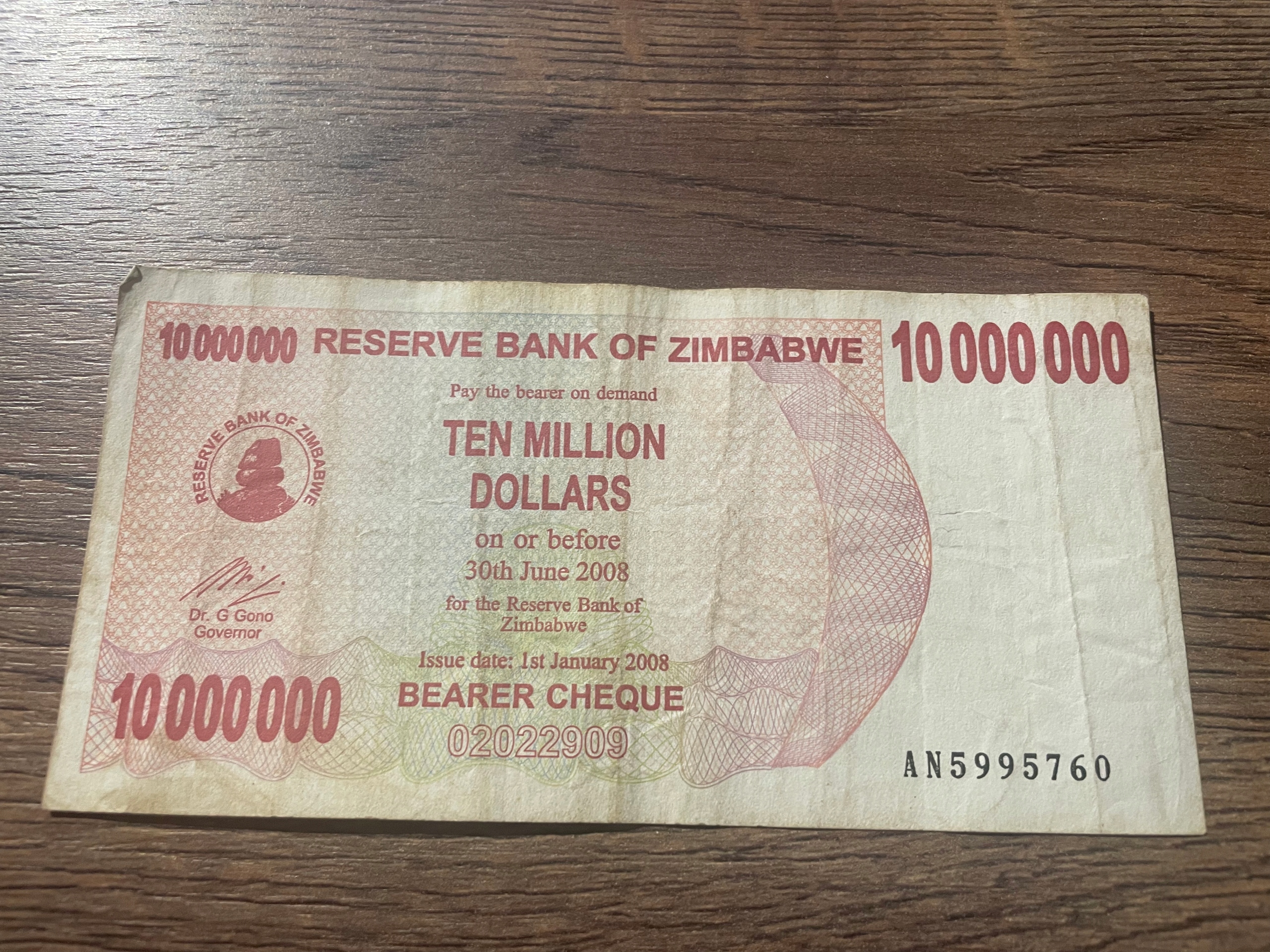 Зімбабве - 10000000 доларів - 2008р