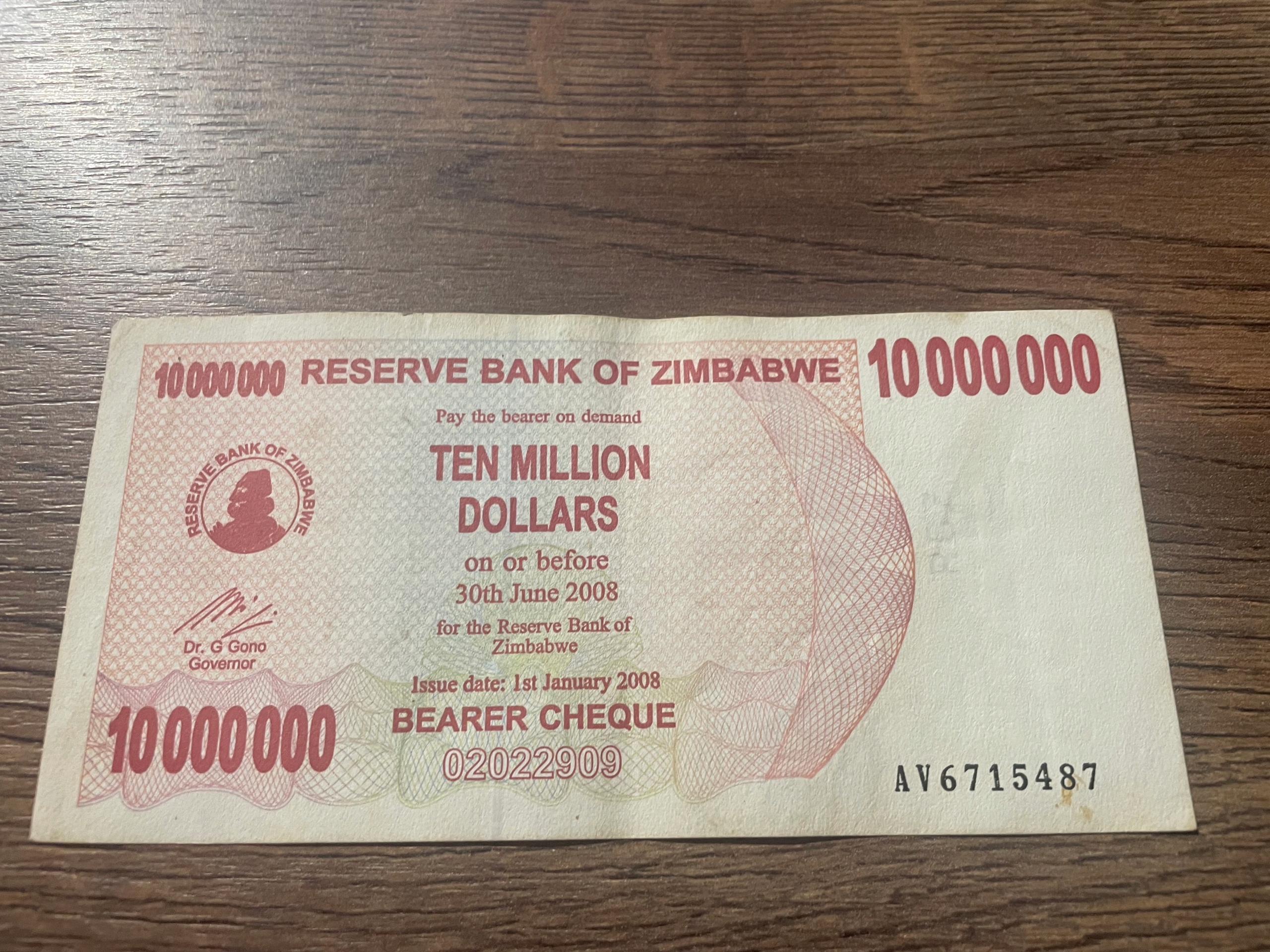 Зімбабве - 10000000 доларів - 2008р