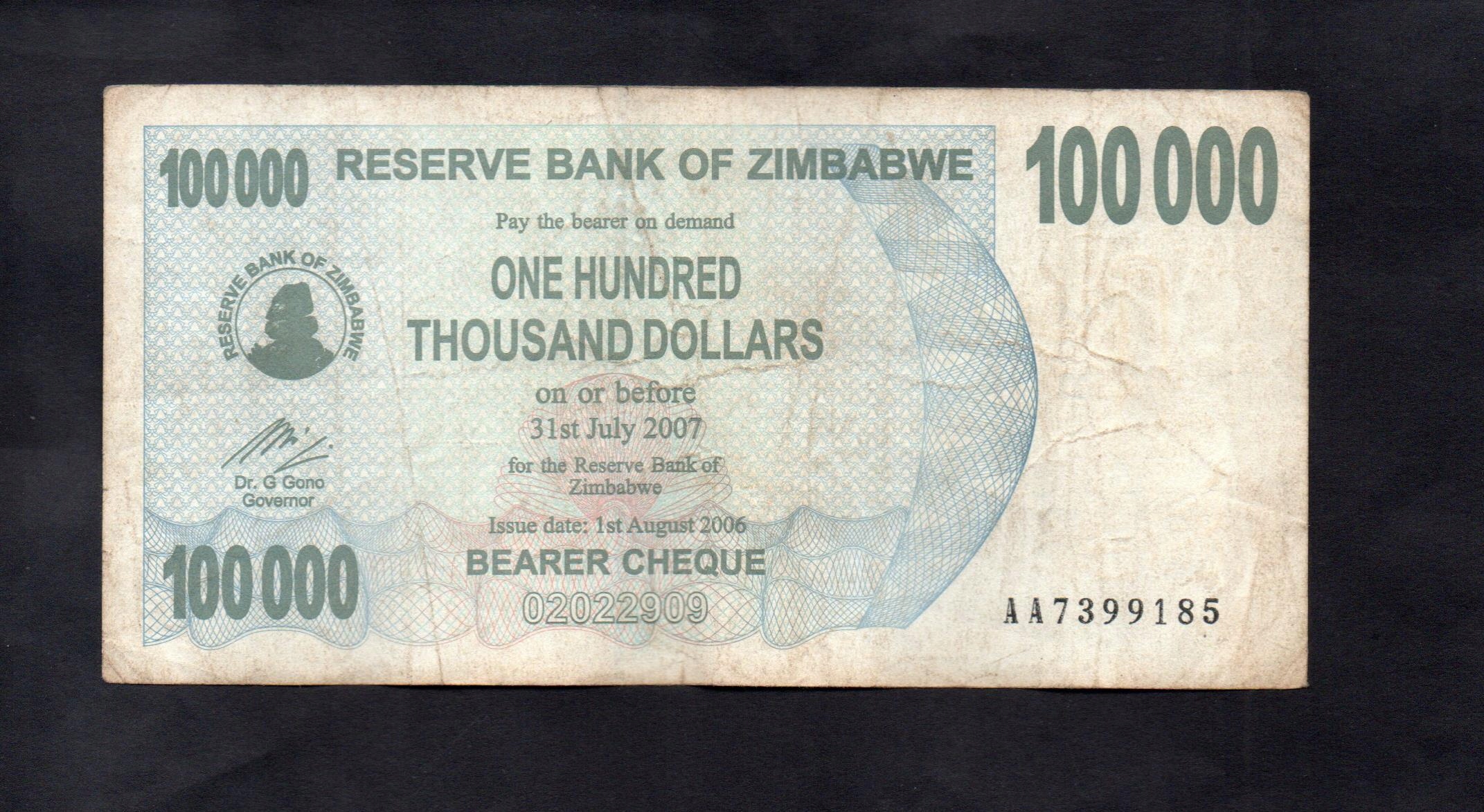 Zimbabwe Banknote - 100 000 доларів - 2006 рік