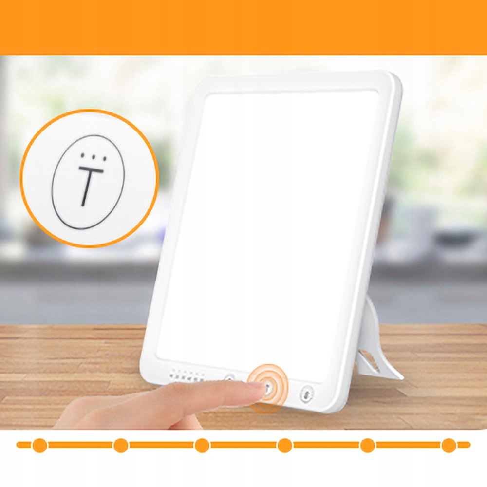 Сильний: Площа освітлення з розмірами 162 х 136 мм навіть освітлення з інтенсивністю світла 10 000 люкс, 3 варіанти яскравості (білі, натуральні та тепло). Ви можете вибрати бажану яскравість. Світлодіодна технологія без мерехтіння та ультрафіолетового випромінювання
