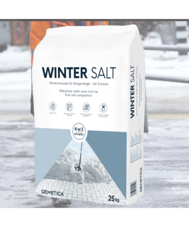 ⭐ Qemetica Winter Road / Pavement Salt 25 кг – Ефективне розморожування поверхні ⭐