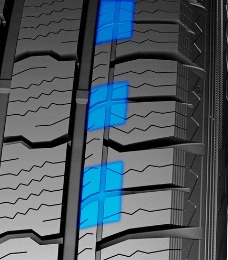- Велика кількість ламелей, розташованих зигзагом під різними кутами, ефективно відокремлює сльоту від води, забезпечуючи таким чином краще зчеплення на засніжених і зледенілих дорогах.