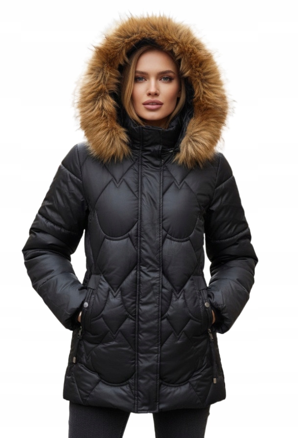 ЗИМОВА ЖІНОЧА КУРТКА ПІКОВАНА З КАПЮШОНОМ ТА ЗНІМНИМ ХУТРОМ ЧОРНА M