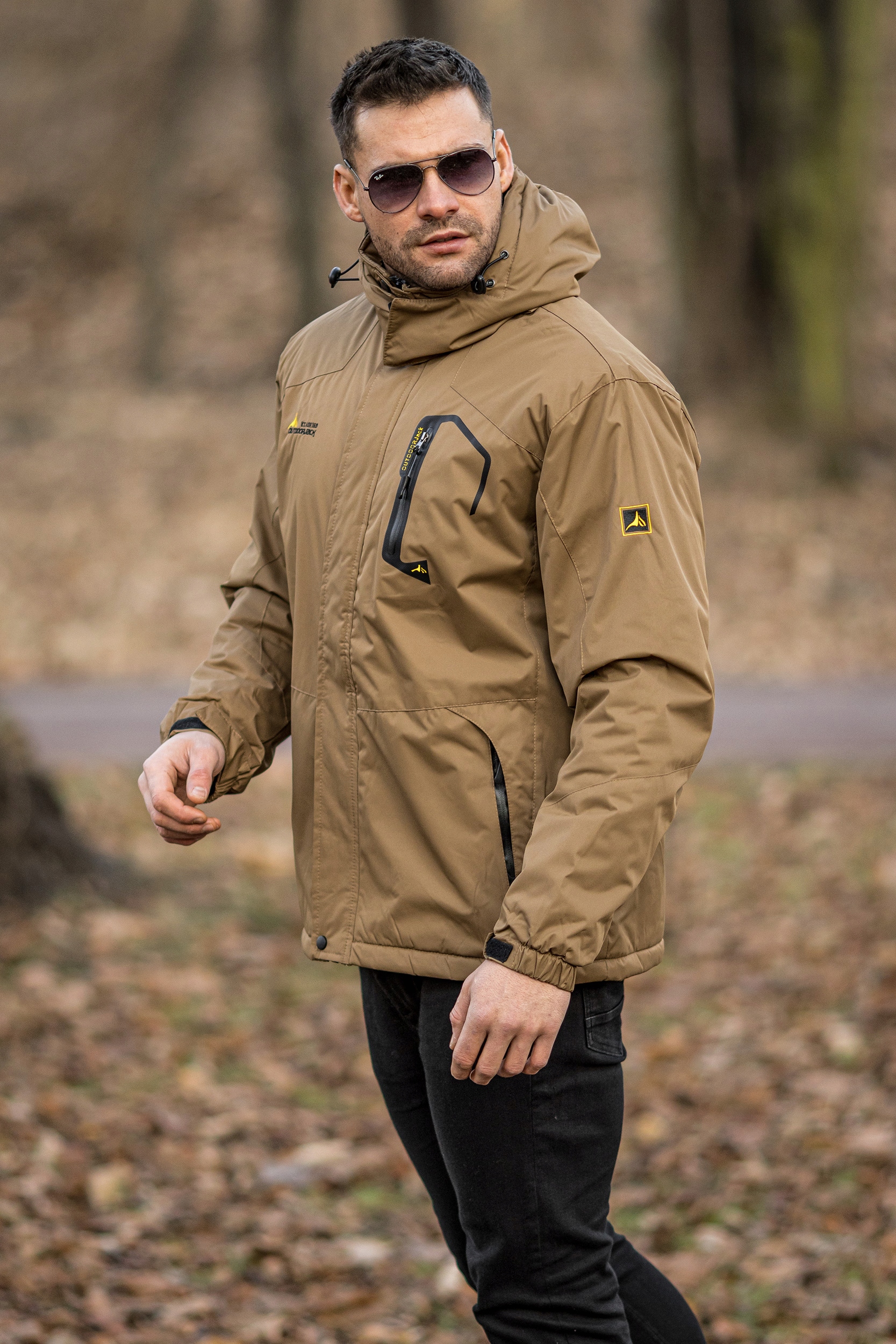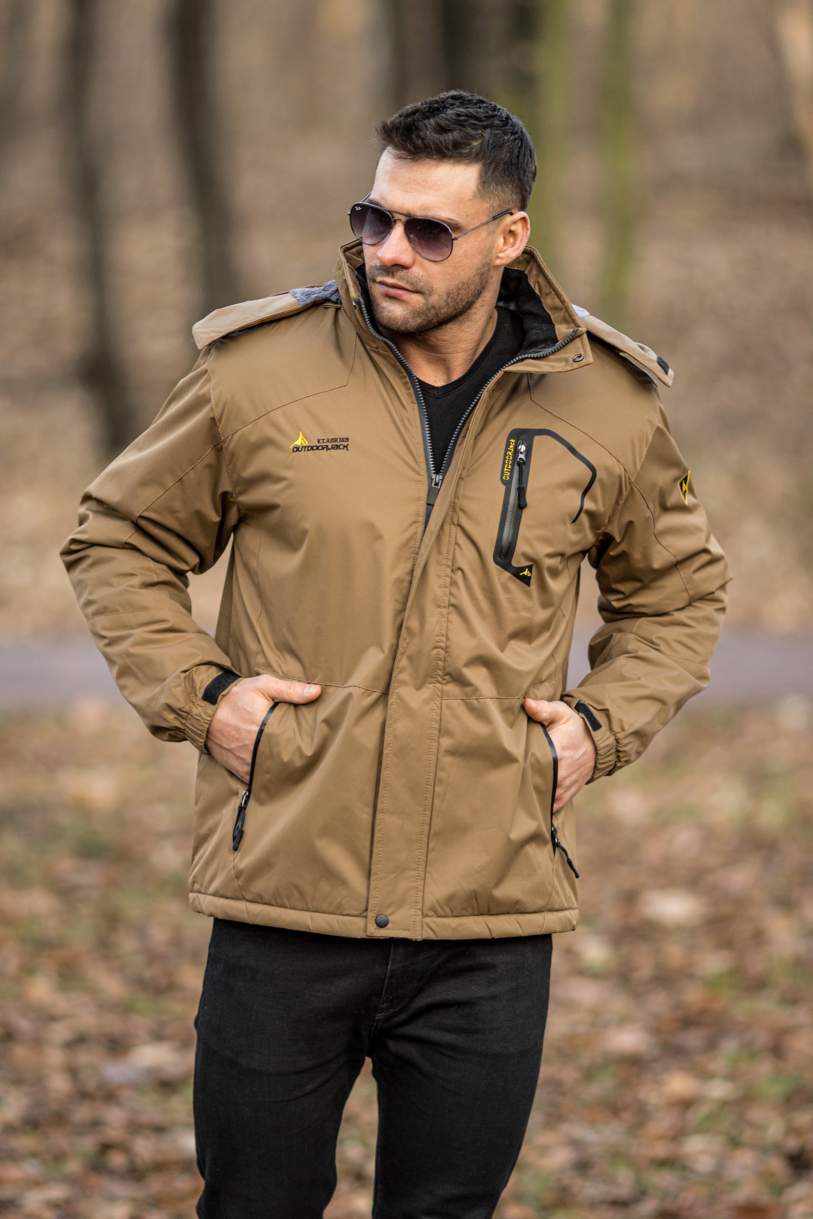Зимова куртка -чоловіка, утеплена відкритим капюшоном - коричневий - xl