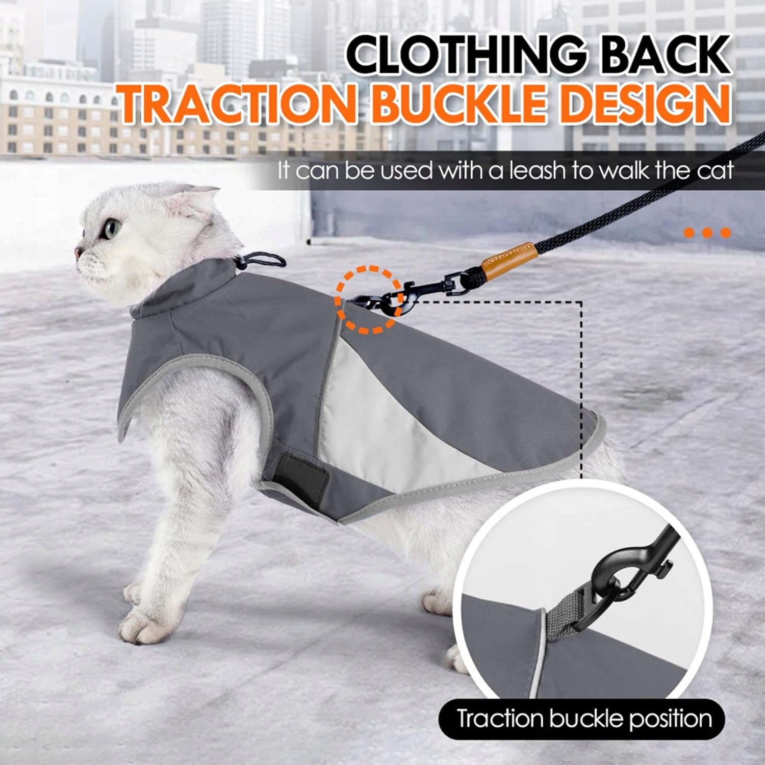 Зберігайте свого пухнастого друга в теплі та сухості за допомогою нашої зимової куртки для котів. Використовується чудова водонепроникна та дихаюча тканина з регульованим шнурком для щільного прилягання. Спеціально розроблено для покращення видимості під час нічних змін.
