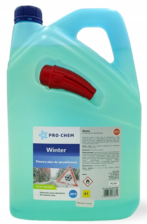Висока якість зимової шайби. Видаляє забруднення, не залишаючи смуг. Нешкідливо для лаку, фари та гумових прокладок. Це дає блиск і має приємний запах зеленого яблука. Рідина зберігає свої властивості до -22 ° C.