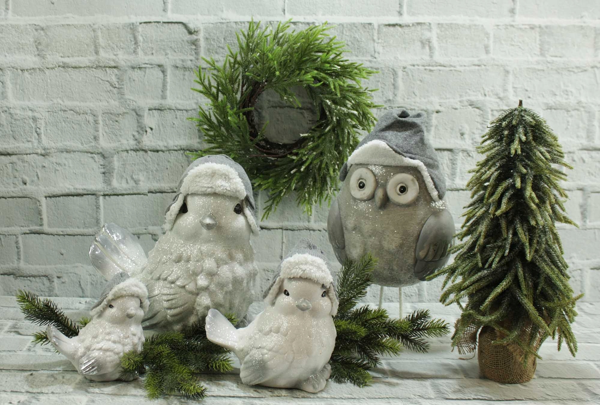 Зимова різдвяна прикраса з пташиною керамікою на гілці дедодомі
