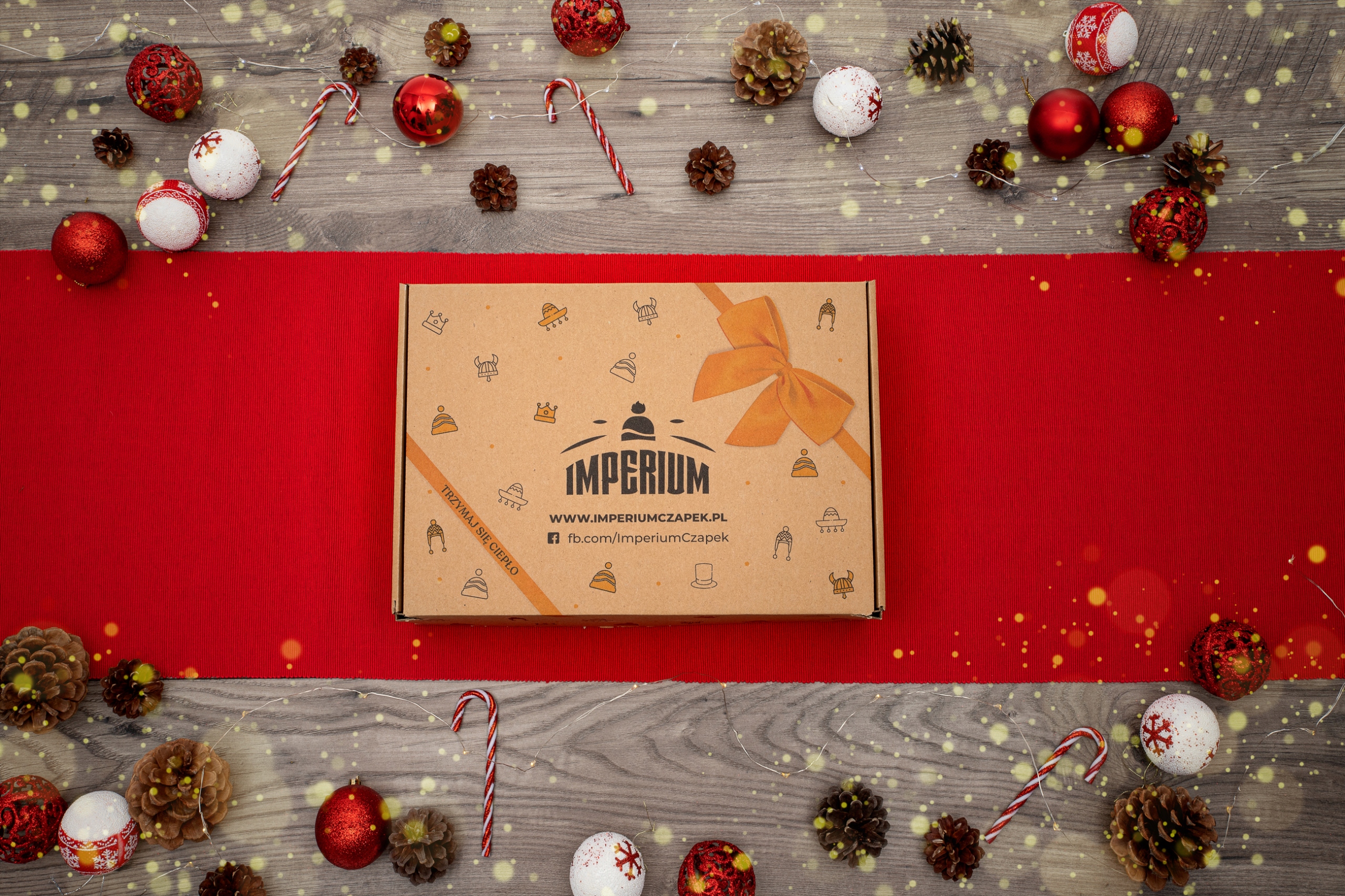 - Ми запаковуємо капелюхи в екологічну упаковку (фігурні коробки з принтами капелюхів) з логотипом нашого бренду - Imperium Czapek. Капелюх загортаємо в цигарковий папір бежевого кольору, на який наклеюємо фірмову наклейку