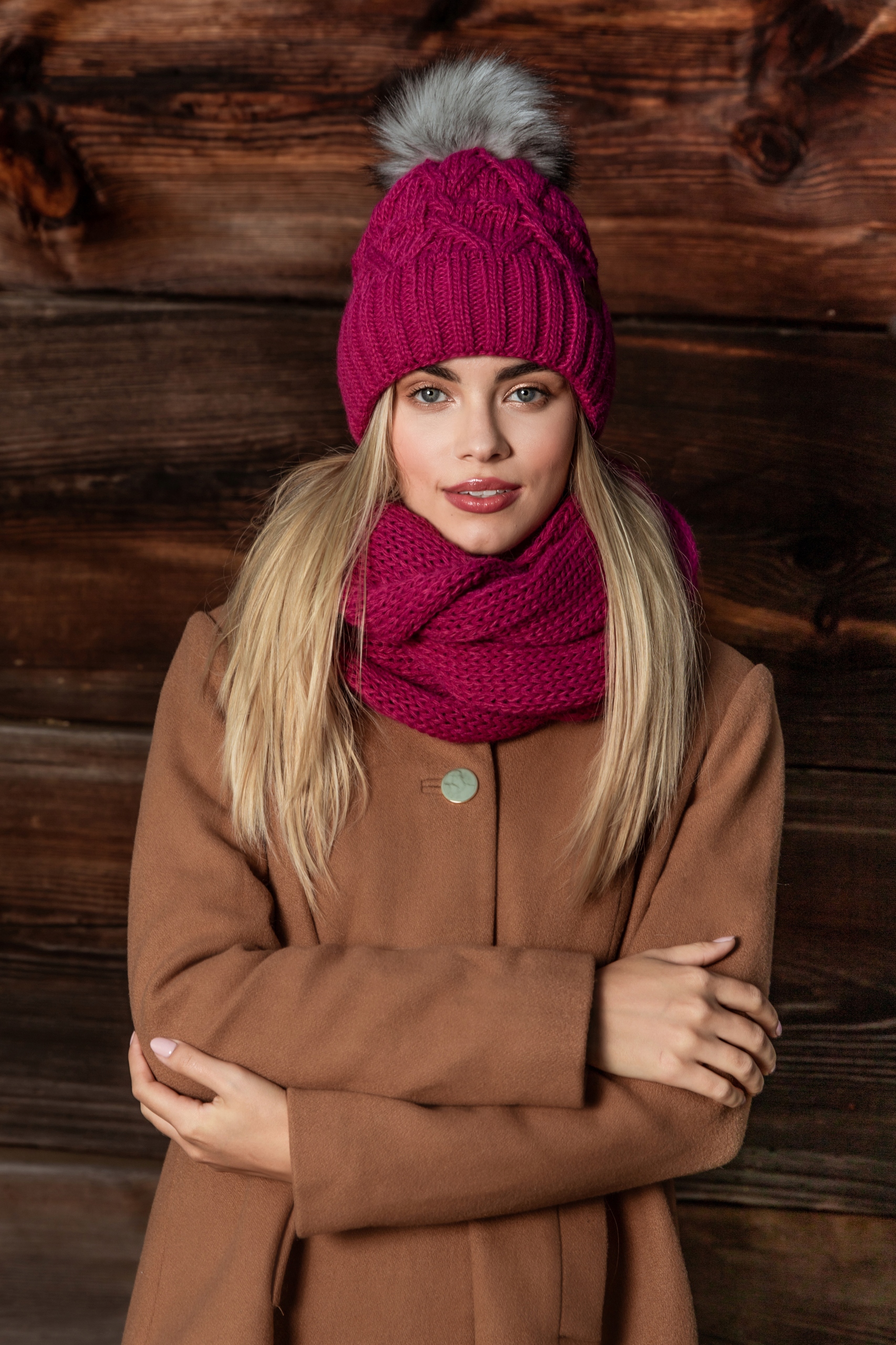 Жіночий зимовий комплект кольору фуксії