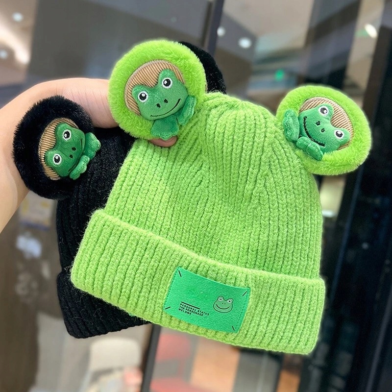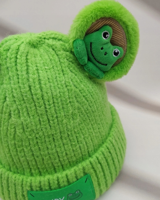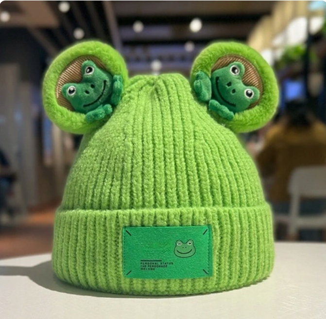 М'яка, приємна на дотик шапка з декоративними вушками жаби.