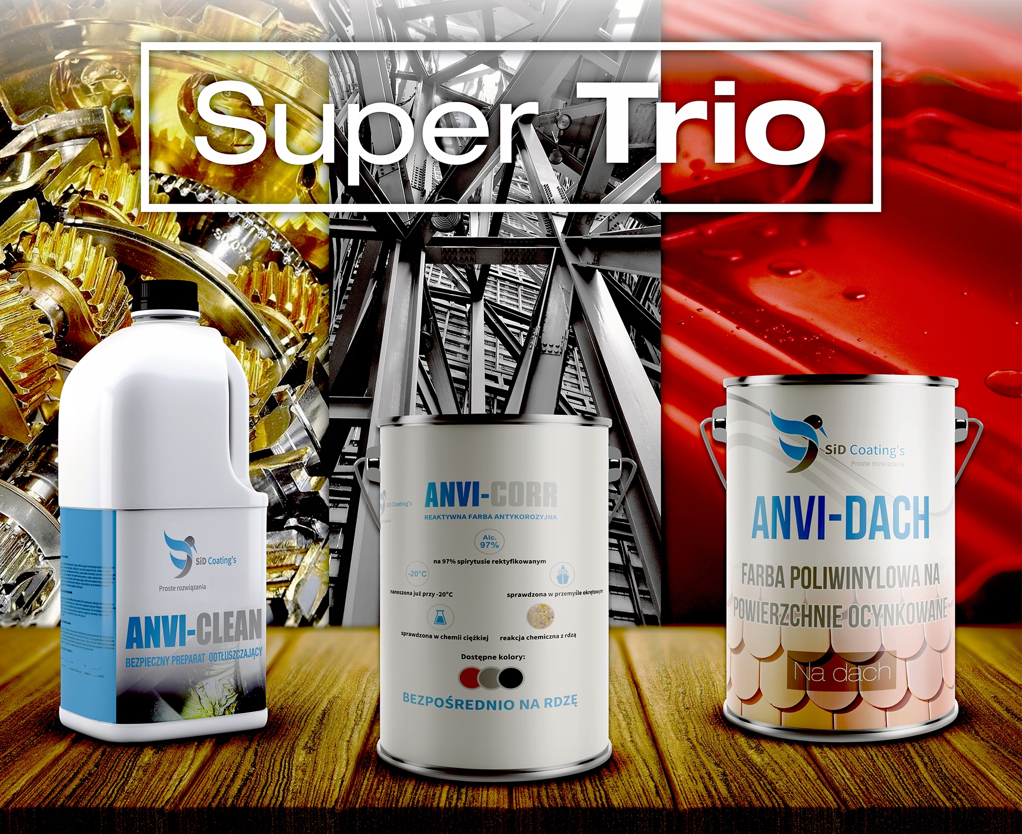 ВЛАСТИВОСТІ:фарба на основі спирту-ректифікату, який прискорює час висихання та випаровується на 100%. ANVI-CORR також містить плівку PVB, яка підвищує захист і гнучкість покриття, одночасно підвищуючи стійкість до механічних пошкоджень. Фарба не реагує з іншими покриттями, що дозволяє використовувати її на старих покриттях і дозволяє використовувати інші покриття на ANVI-CORR, такі як поліуретани, епоксидні або акрилові. Фарба вступає в хімічну реакцію з іржею, спирт очищає поверхню, а спеціальна смола і пігменти реагують з іржею. Завдяки цьому ANVI-CORR можна наносити безпосередньо на іржу (рівень чистоти St. 2 згідно з PN ISO 8501-1:1996).