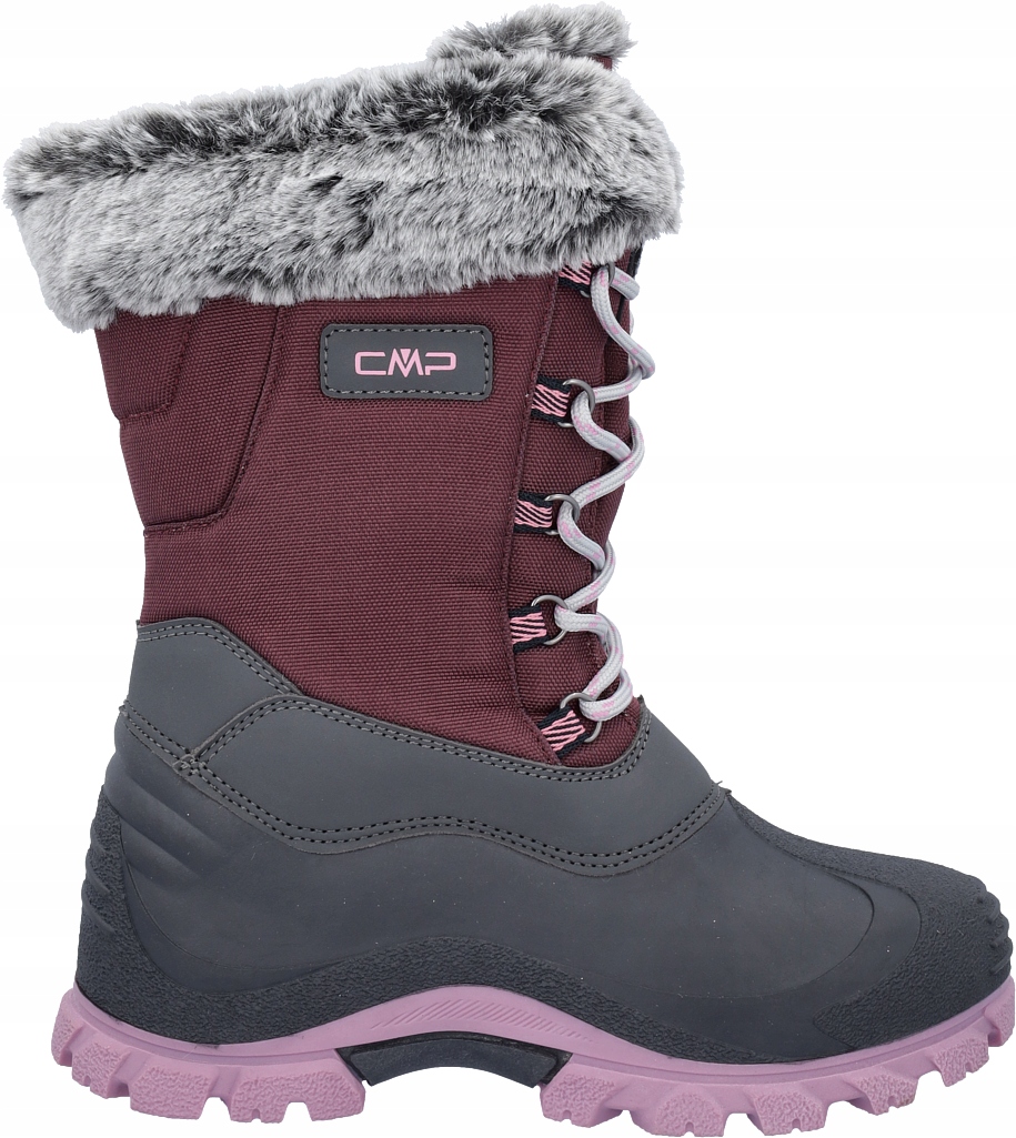 Легкі та теплі зимові черевики для дівчинки, створені за моделлю популярної моделі CMP Nietos. Комфортне зимове взуття вирізняється гумовим чобітком у поєднанні з підошвою, що забезпечує високий захист від вологи та гострих країв. У той же час високий шнурований верх виготовлений з просоченого матеріалу, що забезпечує стабільну посадку та стійкість до мокрого снігу.