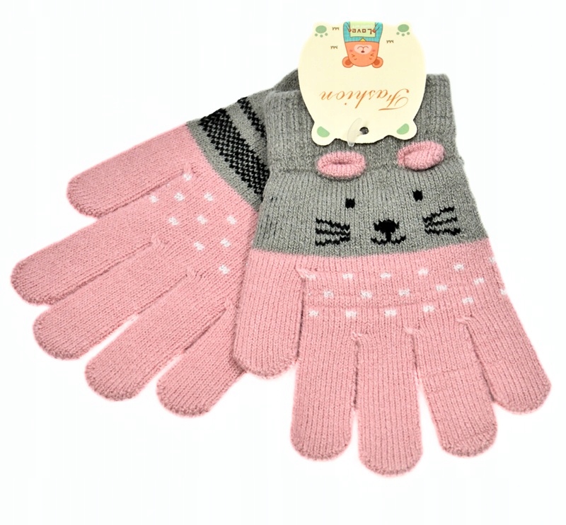 Зимові дитячі рукавички. П’ять -фальшива кішка