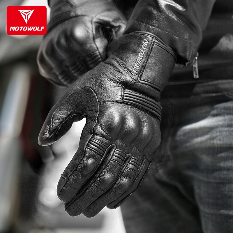 Рукавички MOTOWOLF надзвичайно легкі та зручні. Їх найбільшою перевагою, завдяки спеціальному покриттю, є можливість керувати телефоном вказівним пальцем. Рукавички застібаються на липучку, що робить надягання швидким і зручним. Вони ідеально підходять до форми руки. Рукавички мають елегантні накладки на кісточки та пальці, покриті шкірою для кращої естетики та однорідності. Вони виготовлені зі шкіри. Ретельно виготовлені чохли не щипають і не заважають під час руху. Приємна на дотик підкладка з тепловими властивостями гарантує комфортне надягання і знімання, а також відмінно захищає від холоду. Їх можна використовувати як для їзди на мотоциклі, так і для бігу, гірських походів, верхової їзди, стрільби та інших видів активного відпочинку.