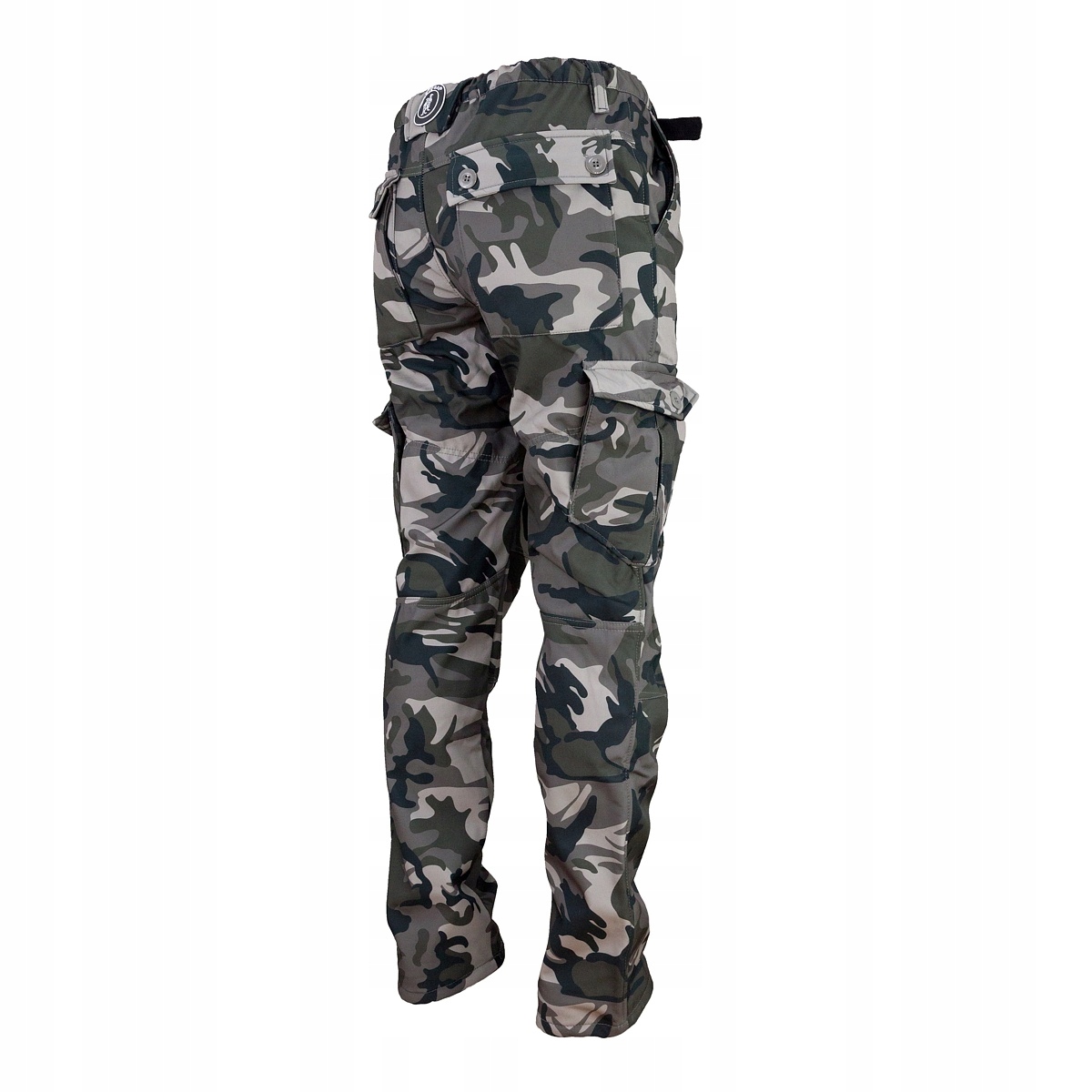 Мають численні кишені: 2 спереду, 2 ззаду та 2 з боків штанин, що застібаються на гудзики. Ніжки оснащені регульованими манжетами.