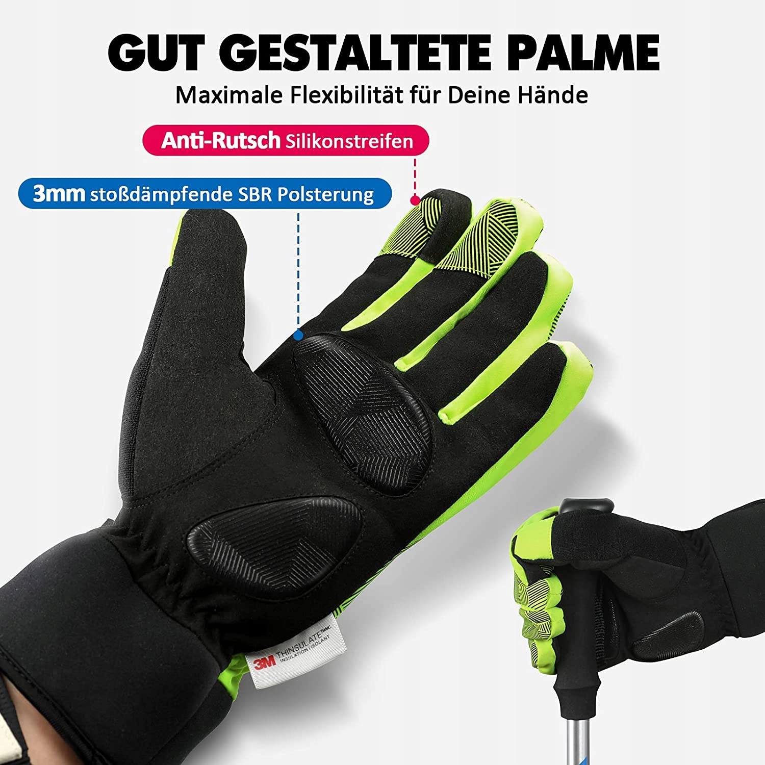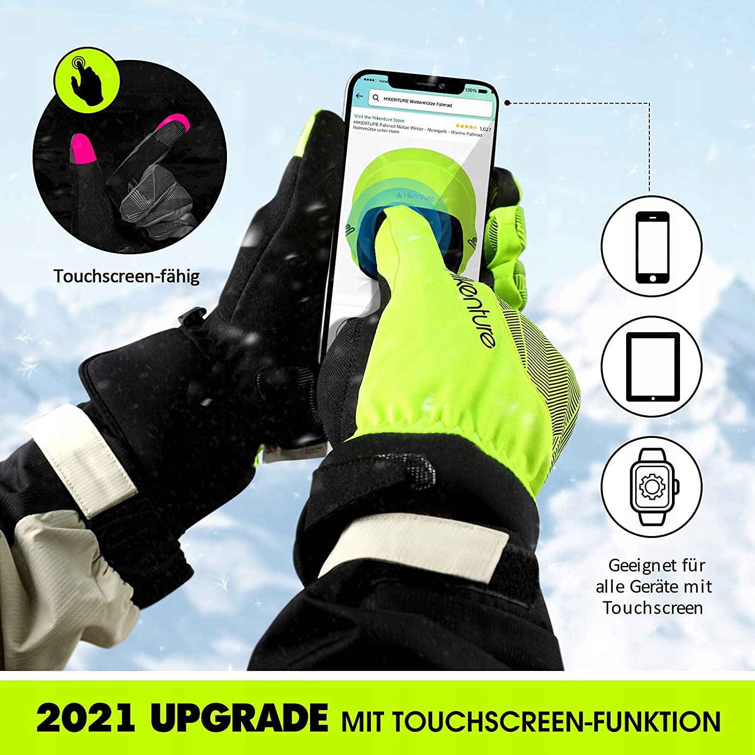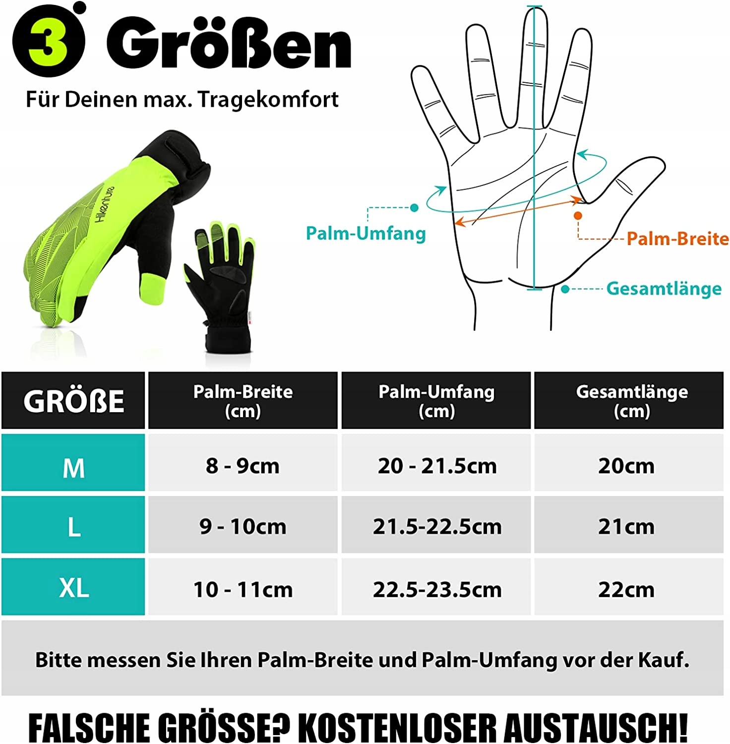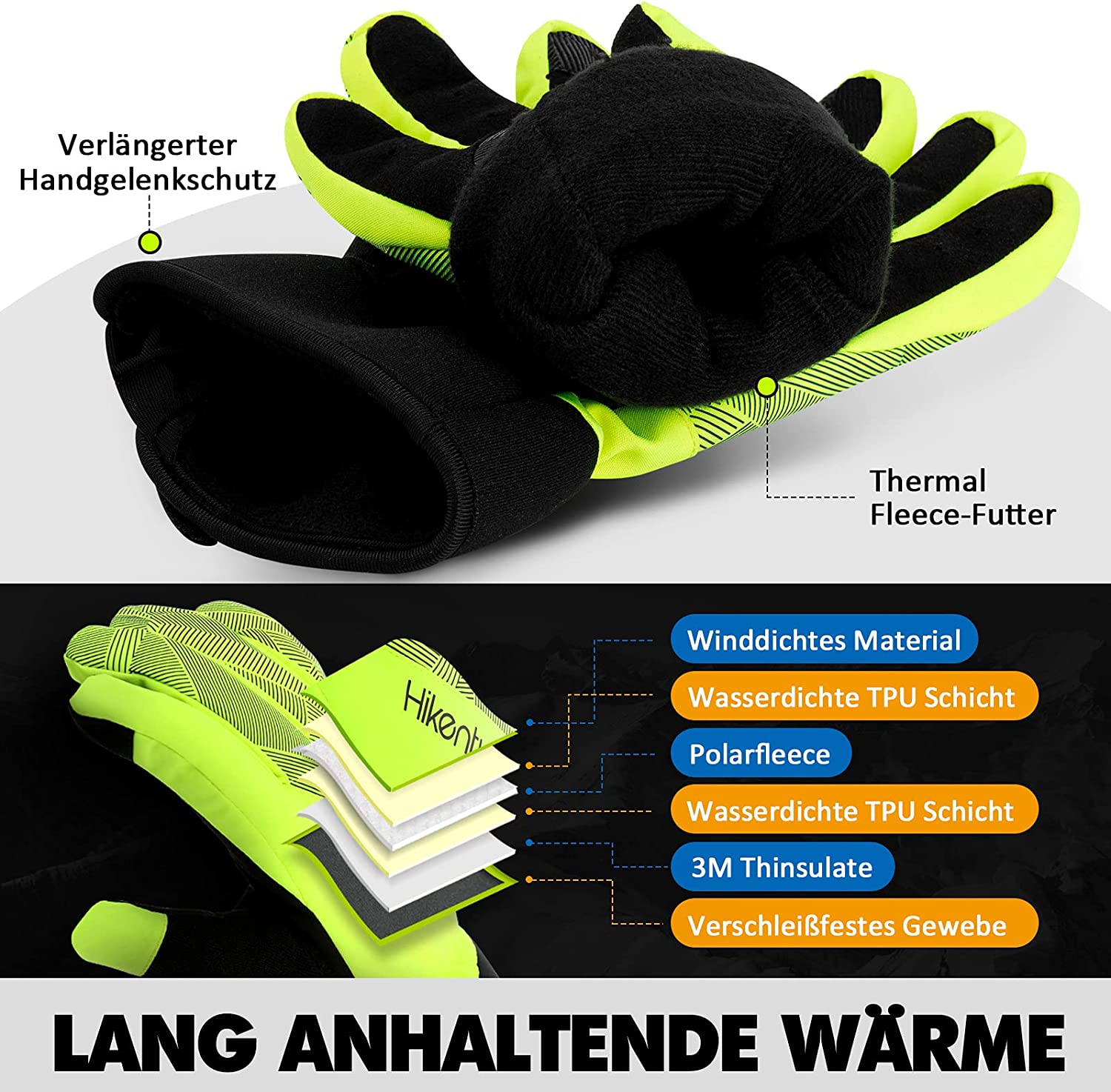 - Відмінне співвідношення комфорту до тепла: ретельно підібрані високоякісні матеріали для найкращого компромісу між теплом та максимальним комфортом. Зимові рукавички на відкритому повітрі зберігають пальці сухими та теплими в дощові та холодні дні. Манжетки досить довгі, щоб можна було комфортно носити під рукавами. Додаткові силіконові відбитки товщиною 3 мм посередині руки та на кінцях пальців покращують зчеплення. Це означає, що ви маєте хороший контроль над складними маршрутами, і ви можете безпечно використовувати гальма. Додаткові отвори вентиляції дозволяють вологості та теплові розрядження. Зимові рукавички Hikenture - це ідеальні аксесуари для майже всіх видів спорту в холодний сезон, такі як їзда на велосипеді, катання на лижах, пішохідний туризм, сноуборд, біг, сходження тощо.