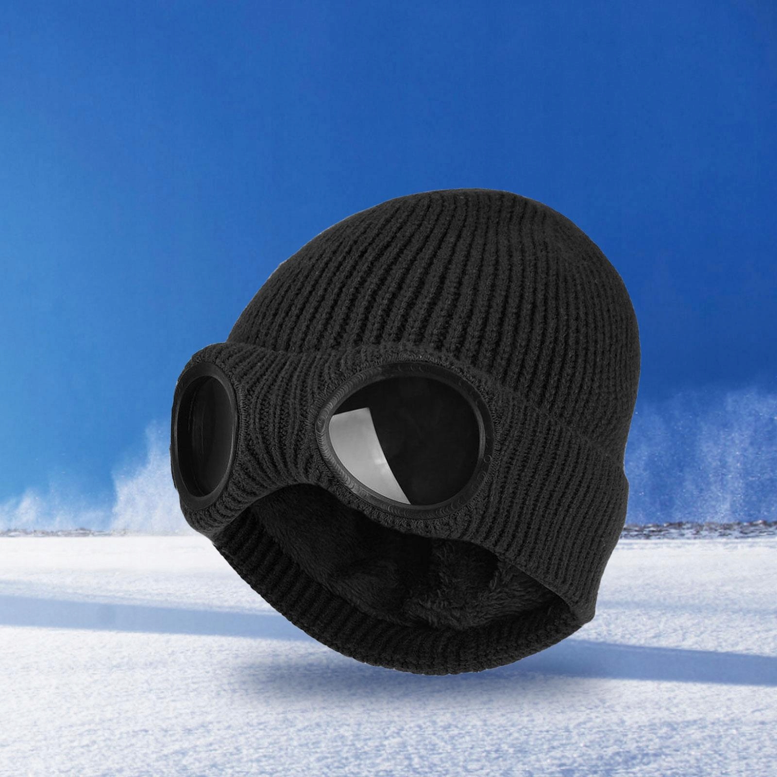 Зимові теплі в'язані шапки Термоплюшеві шапки для жінок, чоловіків, катання на лижах, один розмір, чорний