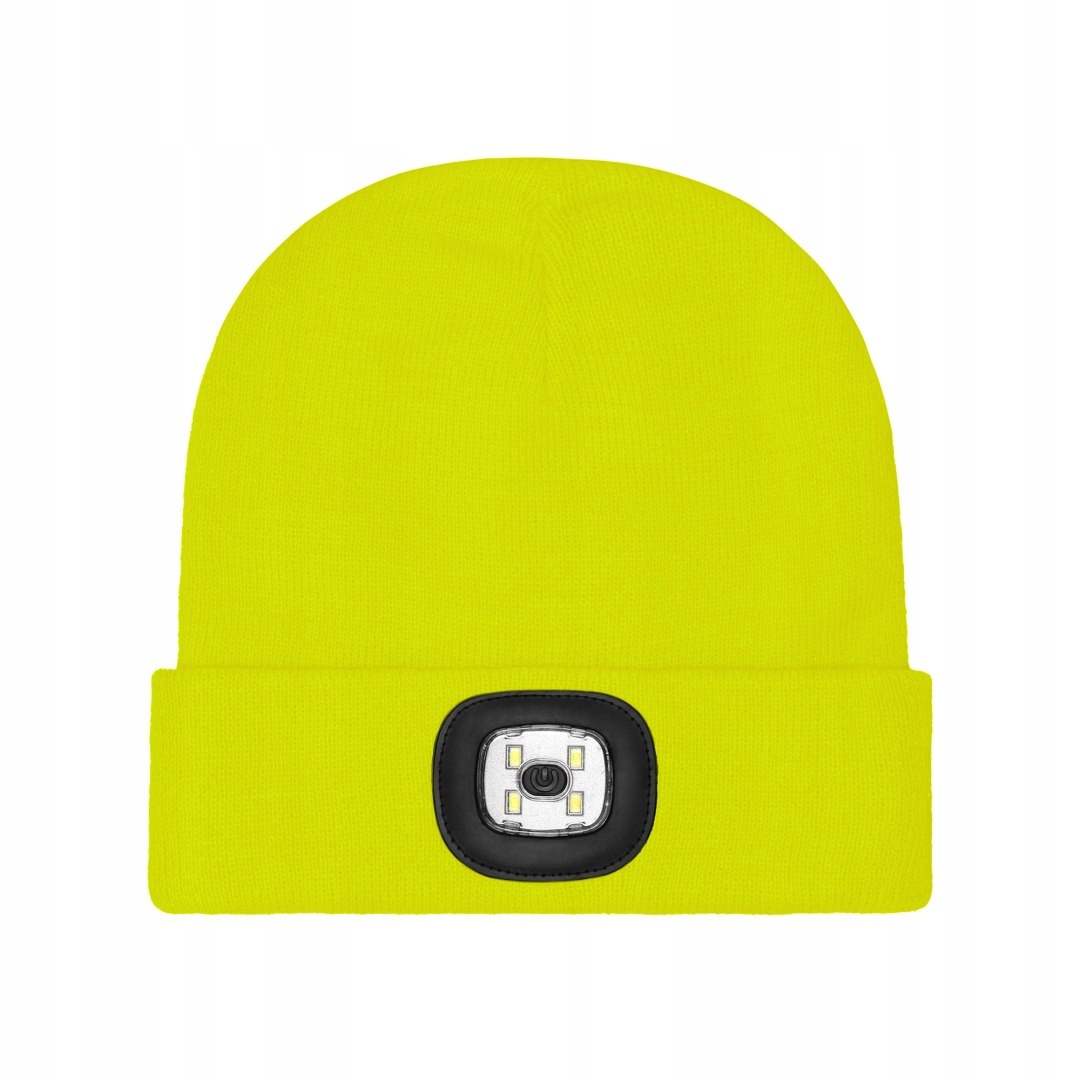 Зимова жовта зимова шапка, виготовлена з трикотажної тканини зі 100% акрилом. Товсте переплетення забезпечує тепловий комфорт у прохолодних умовах. У ковпачку є знімний світлодіодний ліхтарик з трьома рівнями освітлення, завантаженим USB -роз'ємом. Універсальний розмір. Упаковка 10шт/200 шт. Коробка