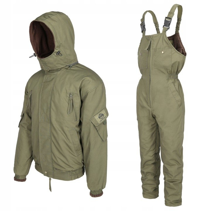 Комплект виготовлений з матеріалу Rip-Stop та утеплений поліефірною ватою. Матеріал Rip-Stop має властивість стійкості до пошкоджень. Захищає від морозу до -25 градусів