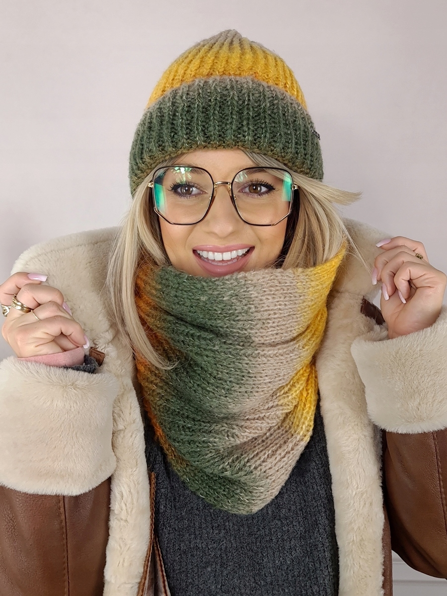 зимовий КОМПЛЕКТ ШАПКА + СПІДНИЦЯ шарф, ТЕПЛИЙ, ЩІЛЬНИЙ, польський продукт, КОЛЬОРИ OMBRE