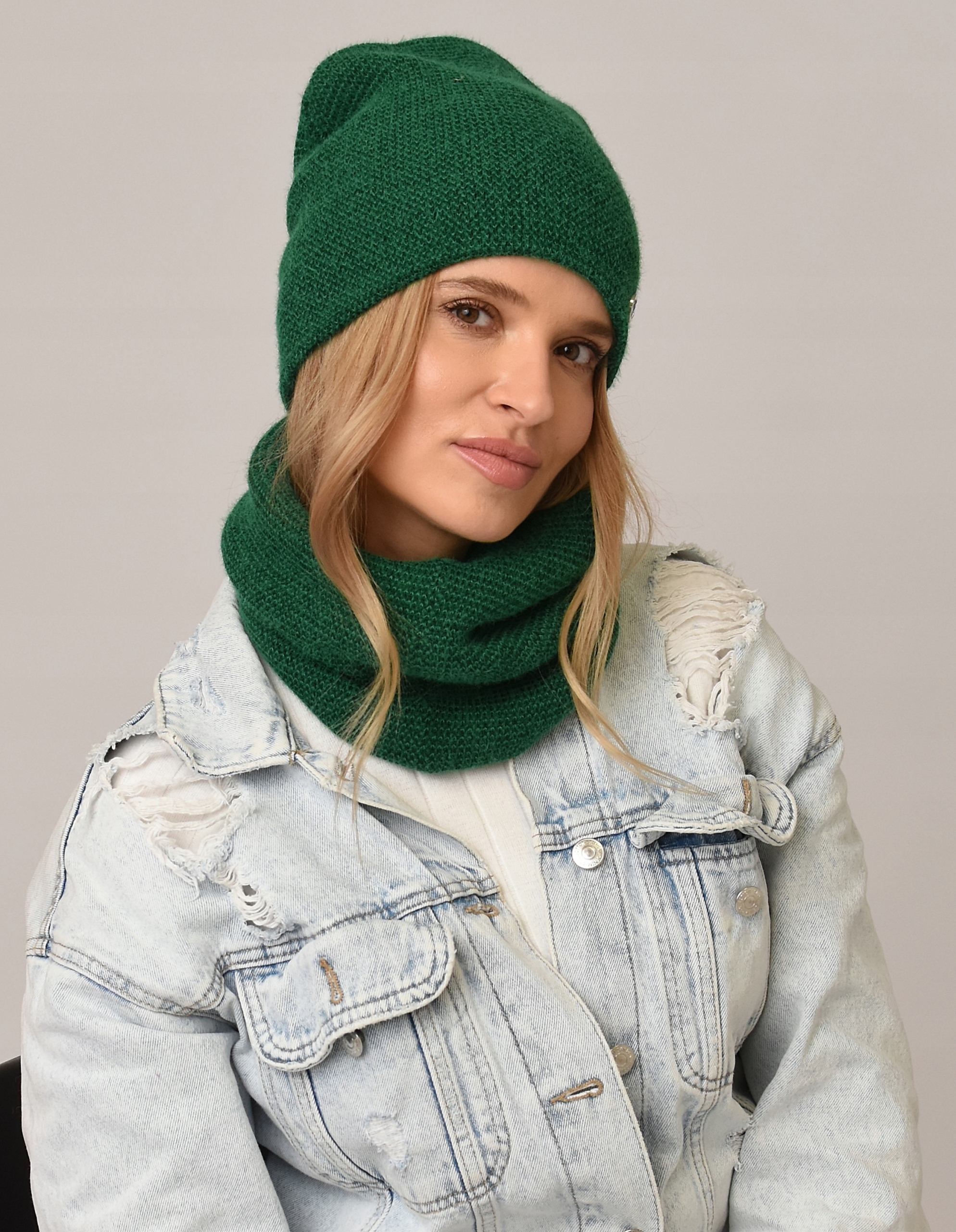 Теплий двошаровий жіночий комплект, шапочка ШАПКА + СПІДНИЦЯ з приємної та приємної на дотик ПРЯЖІ - ПОЛЬСЬКЕ ВИРОБНИЦТВО!