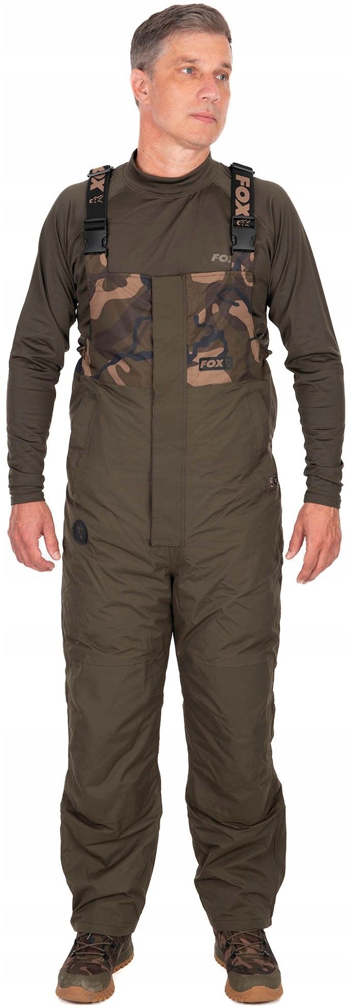 - Штани мають еластичні підтяжки з маркуванням Fox із швидкознімними пряжками та частково еластичним поясом