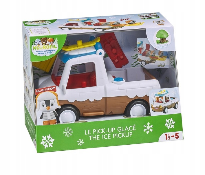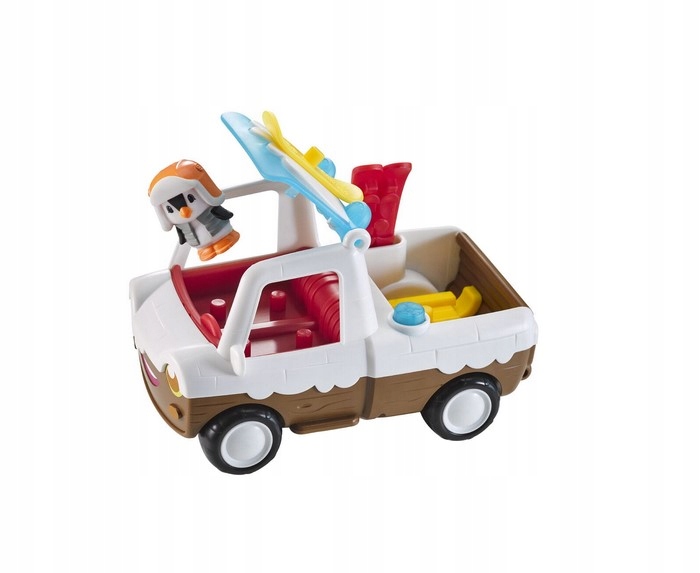 У набір входить: засніжений пікап, один пінгвін, сани, лижі та сноуборд. Іграшка для дітей віком від 18 міс.