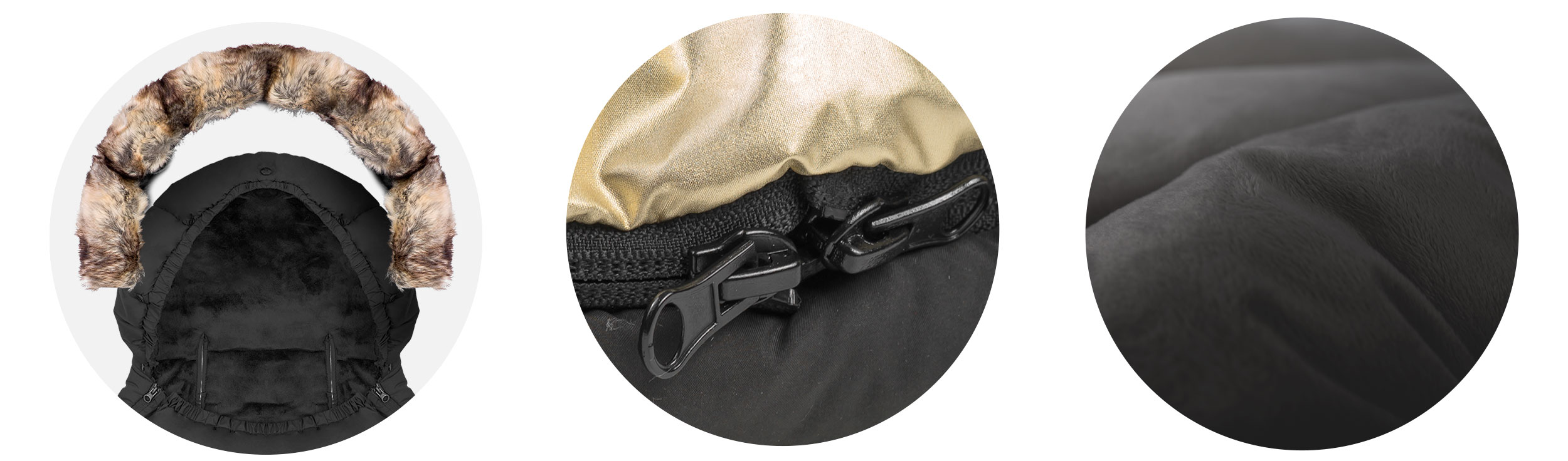 Завдяки універсальним монтажним отворам Elmi спальні мішки можна успішно встановити, можна використовувати в усіх колясках, доступних на ринку.
