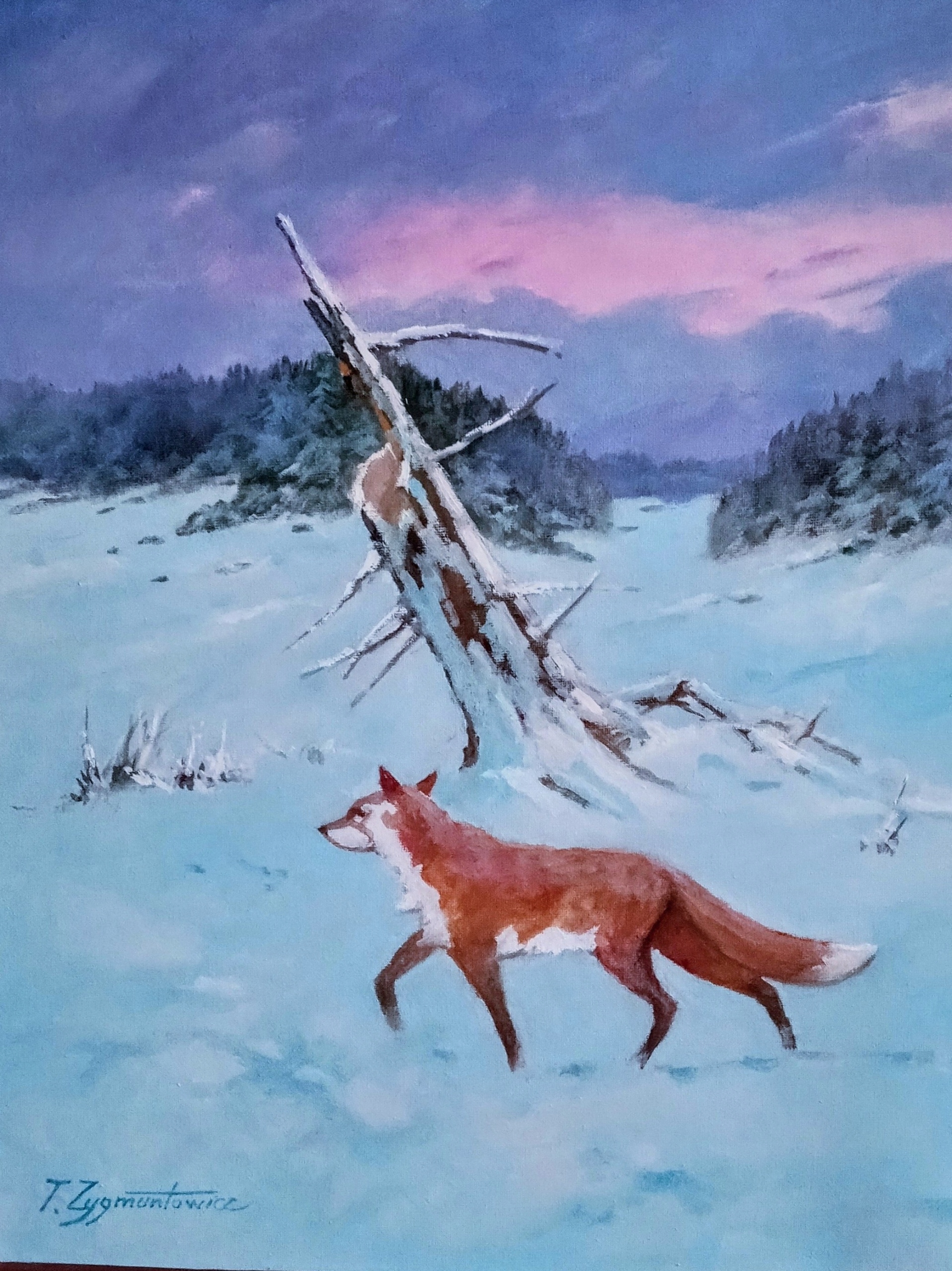 Зимовий вечір- Велике масло, полотно T.zygmuntowicz