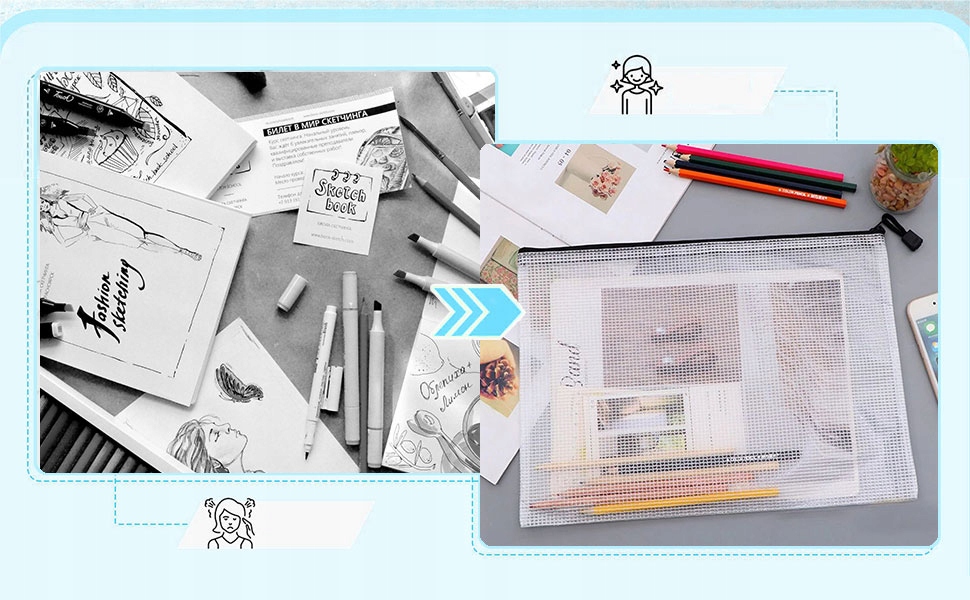 【Сітчастий дизайн】Кишеня на блискавці має напівпрозорий сітчастий дизайн, який дозволяє чітко бачити вміст папки, не відкриваючи її, дозволяючи швидко знаходити потрібні елементи та економити час.