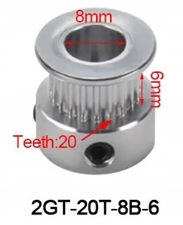 ЗІРІЧКА ДЛЯ РЕМНЯ GT2 20 ЗУБІВ ВІСЬ 8мм