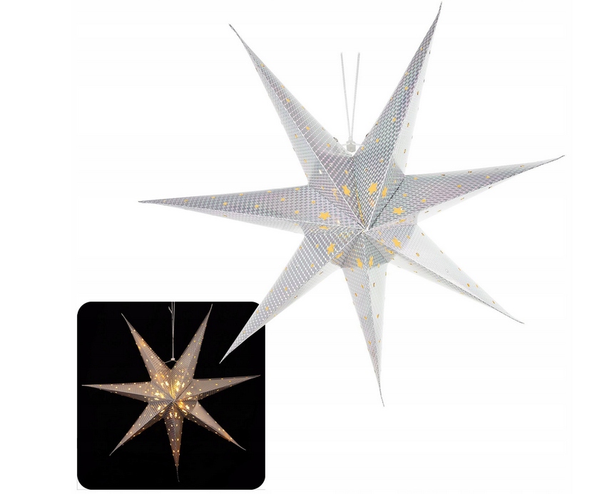 РІЗДВЯНА ЗІРКА ПАПЕРОВА ПІДВІСНА 60 СМ СРІБНА