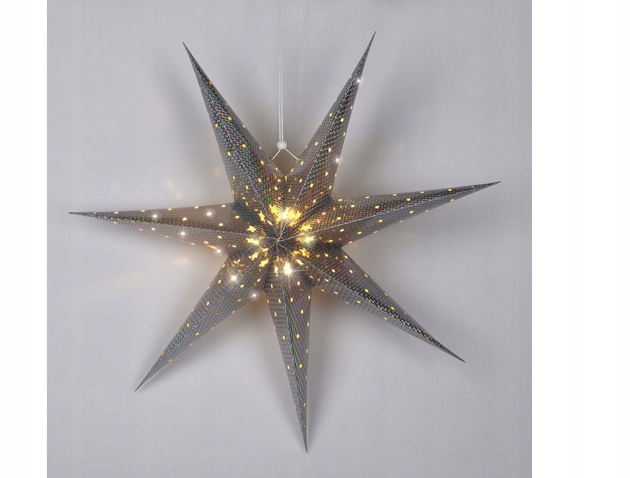 Різдвяна зірка розміром 60 х 60 х 20 см. Це подарує неповторну, святкову атмосферу вдома. Ідеально вписується в будь-який інтер'єр. Його чудово підійдуть на вікно, на стіну або на ялинку. Харчування 2 батарейки АА 1,5 В (не входять в комплект). Вироблено відповідно до європейських стандартів.