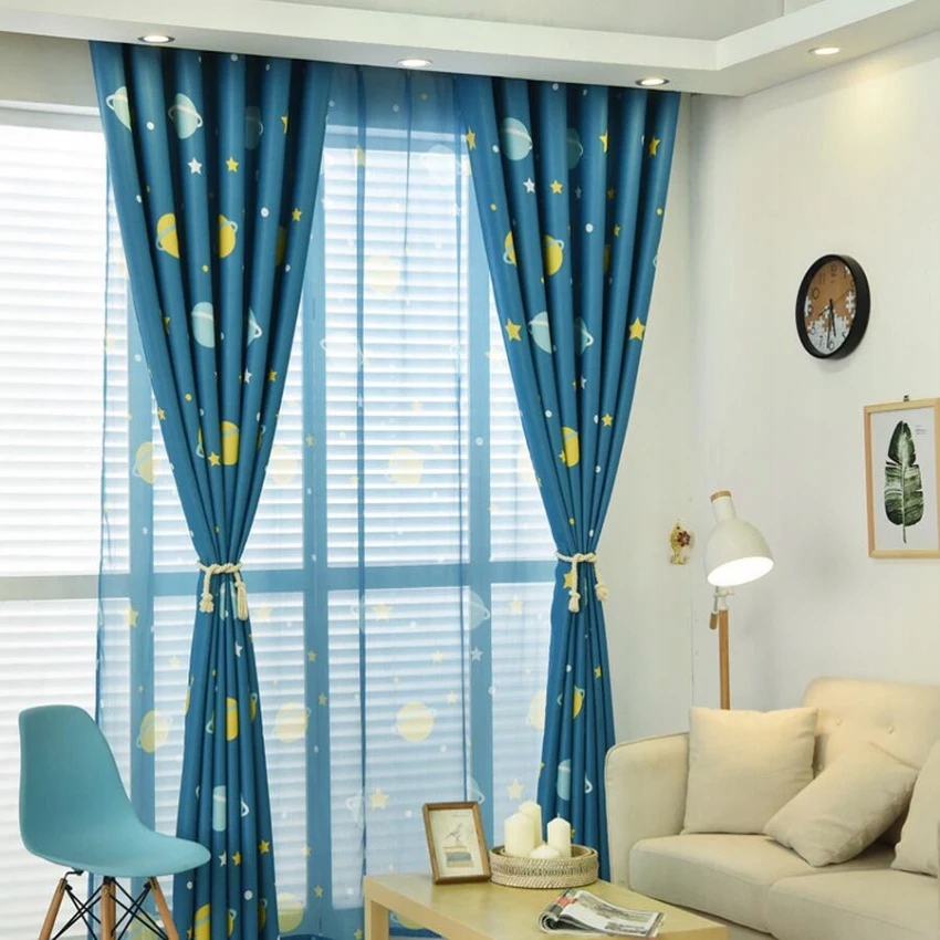 висвітлюйте кімнату вашого маленького космічного дослідника з цією чарівною завісою з мотивом планет і зірок. Запропонована завіса - це не лише практичне доповнення до вікна, але й захоплюючий декоративний елемент, який прийме вашого малюка в подорож через космічні таємниці.