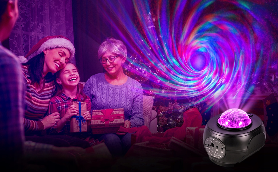 Колір RGB проектора галактики, у свою чергу, створює різні світлові ефекти, поєднує рухому туманність і мерехтливе світло зірок, регульовану яскравість і швидкість, імітує динамічний ефект Чумацького Шляху галактики, створює проекцію фантастичного зоряного неба та романтичної атмосфери в спальні.