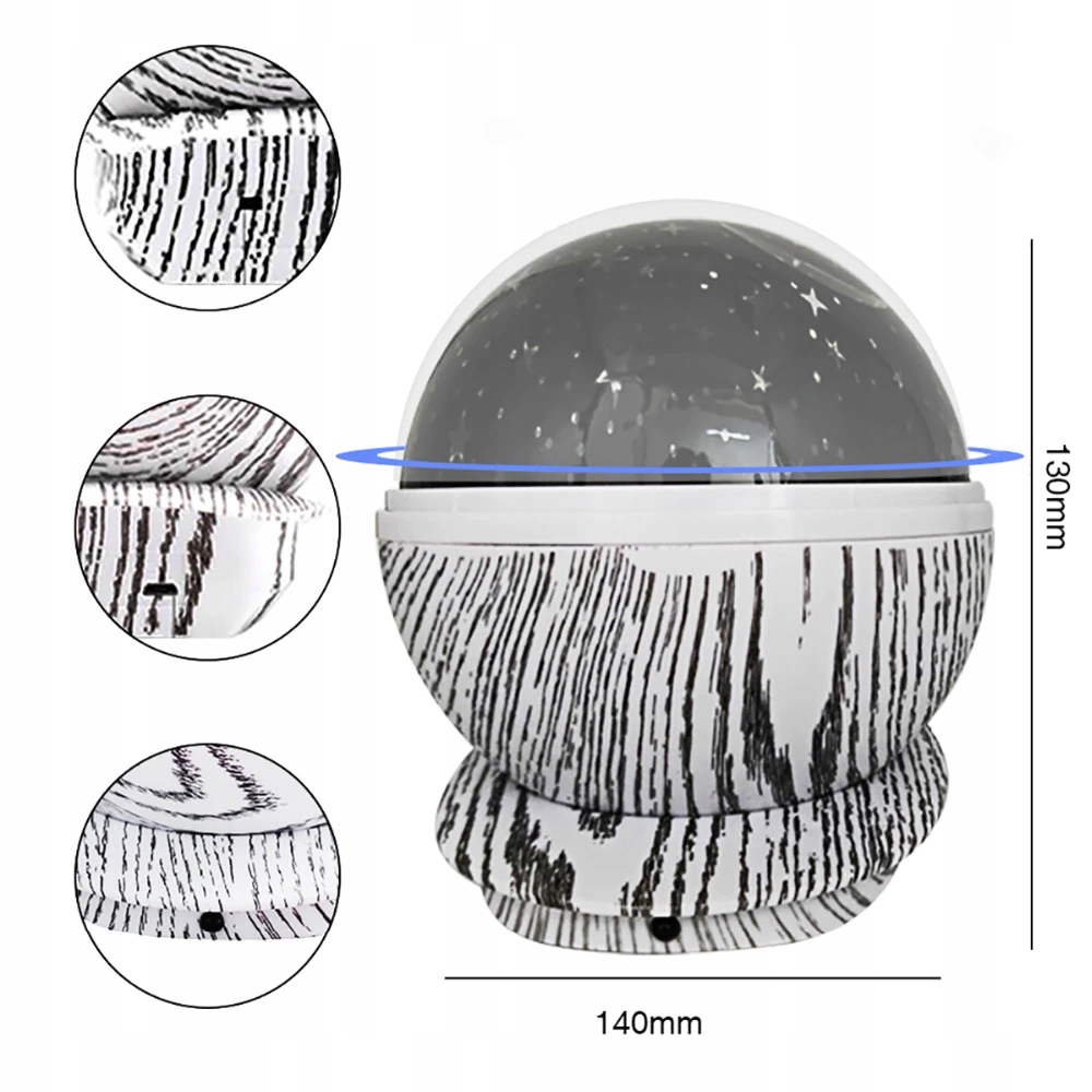 ⚫ Кнопка праворуч - 360 градусів обертання - Зоряний проектор