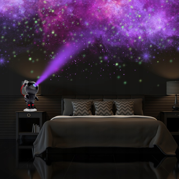 po wączeniu, nasz projektor gwiazd asstronauty nie tylko dostarcza magicznych efektów wizualnych, алей również pelsnkcjucki. Він випромінює різні види постійного світла, що ідеально підходить для дитячої кімнати, особливо для малюків, які бояться темряви. Ця функція забезпечує спокійний і безпечний сон, створюючи приємне освітлення протягом ночі.