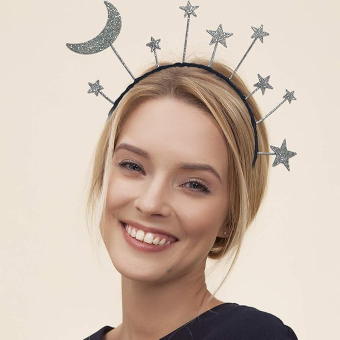- � Дизайн блискучого місяця та зірок блискуча декоративна пов'язка на голову з місяцем та зірками - унікальна і вишукана модна смуга у формі Місячної зірки, яка буде працювати як прикраса для різних вечірок.