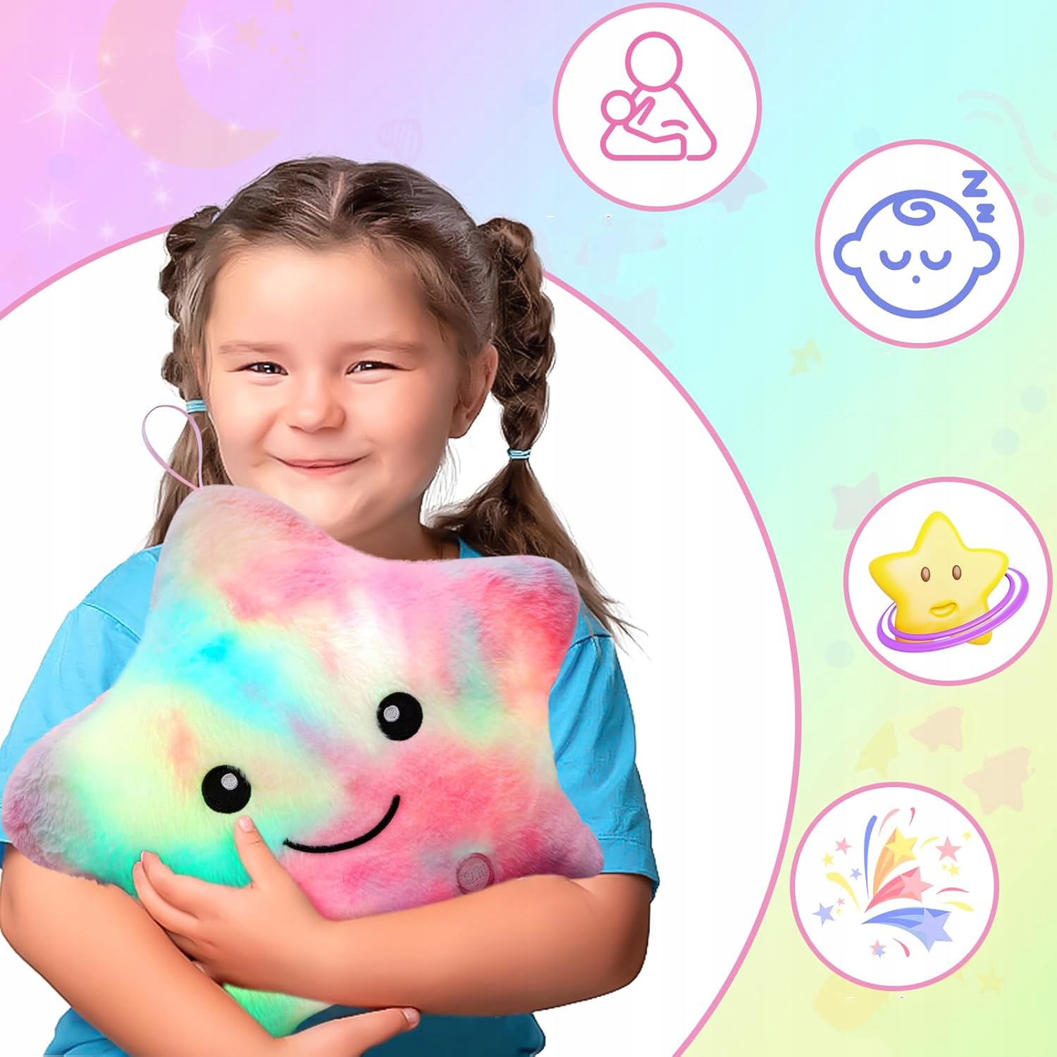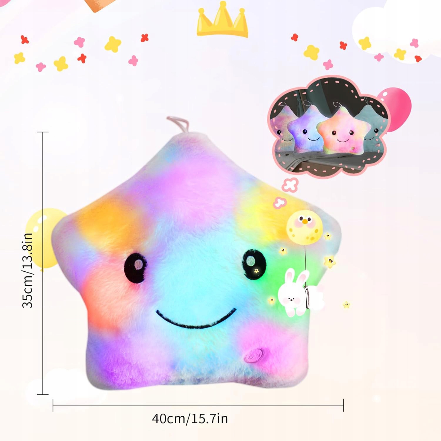✨✨ 【Подушка з легкою зіркою】 : зміна кольору світлодіодного діода, барвисті форми веселки та чарівні зірки додають радість прикрасі. Прикраса дитячої кімнати, вечірки чи дня - ідеальний вибір.