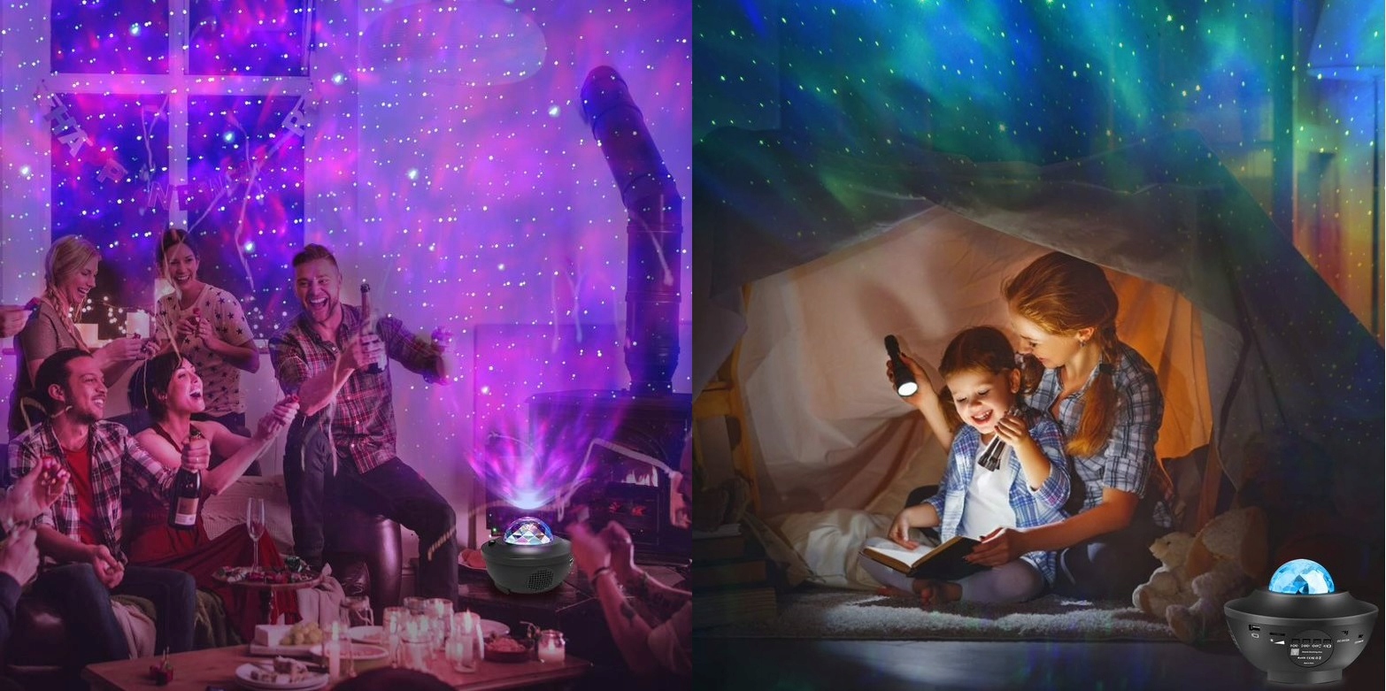 Проектор ідеально підходить для додавання чудової атмосфери звичайним зустрічам з друзями чи під час вечірки. Це ідеальна іграшка для дітей, можливість підключення до пристрою через Bluetooth і відтворення музики покращить атмосферу та веселощі. Це також подарує романтичну атмосферу при зустрічі з другою половинкою, і дуже добре впишеться в звичайні повсякденні ситуації.