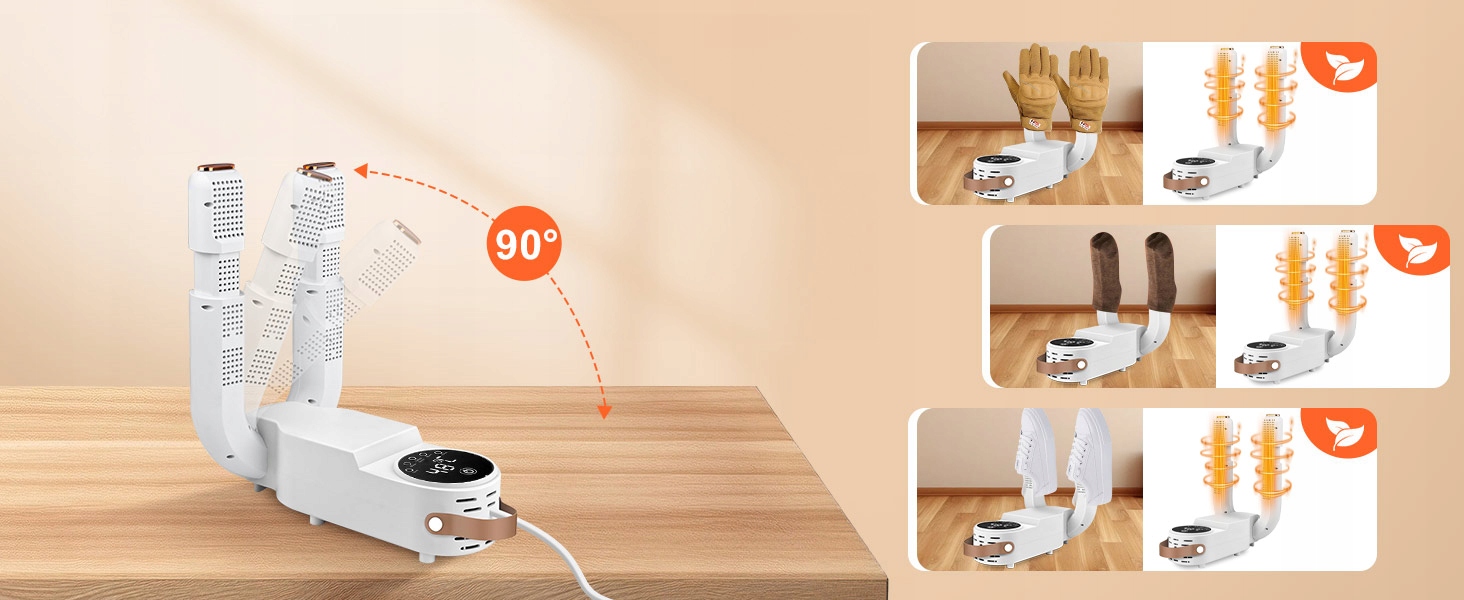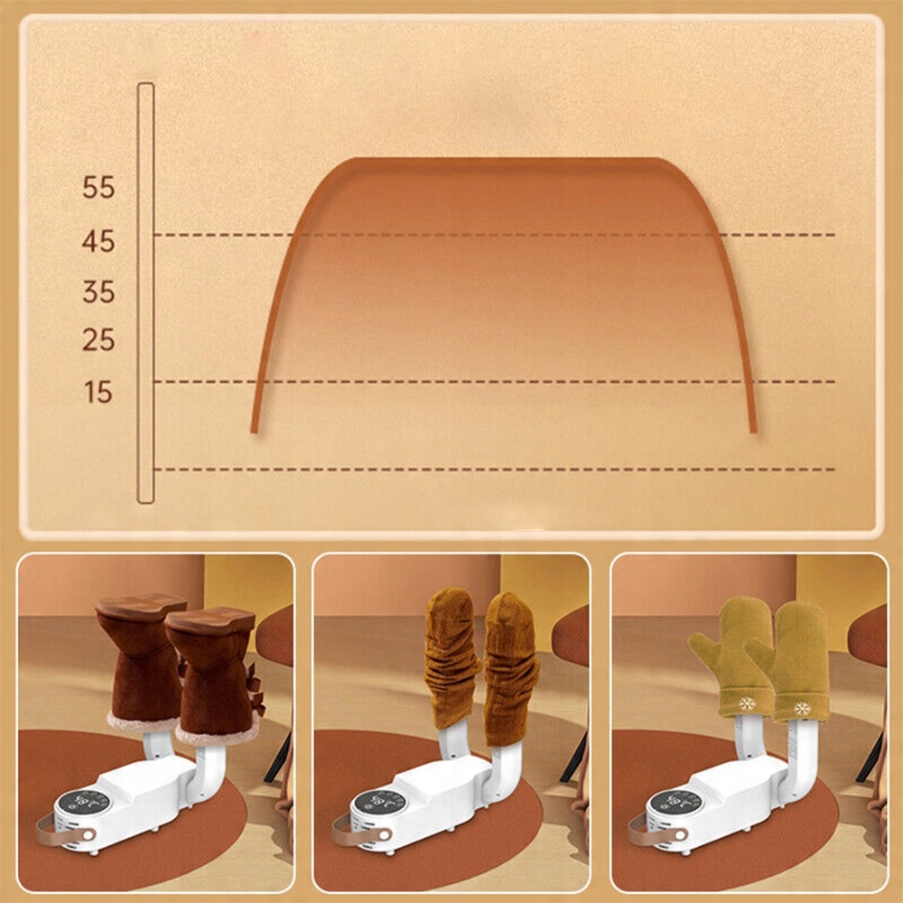 Багатофункціональне електричне взуття для взуття, для взуття, виготовленого з різних матеріалів, можна регулювати за потребою, автоматичне вимкнення, не потребує нагляду. Сушарка для взуття працює надзвичайно тихо, мовчки, ефективно та безпечно і є незамінним побутовим приладом, який потребує кожної родини