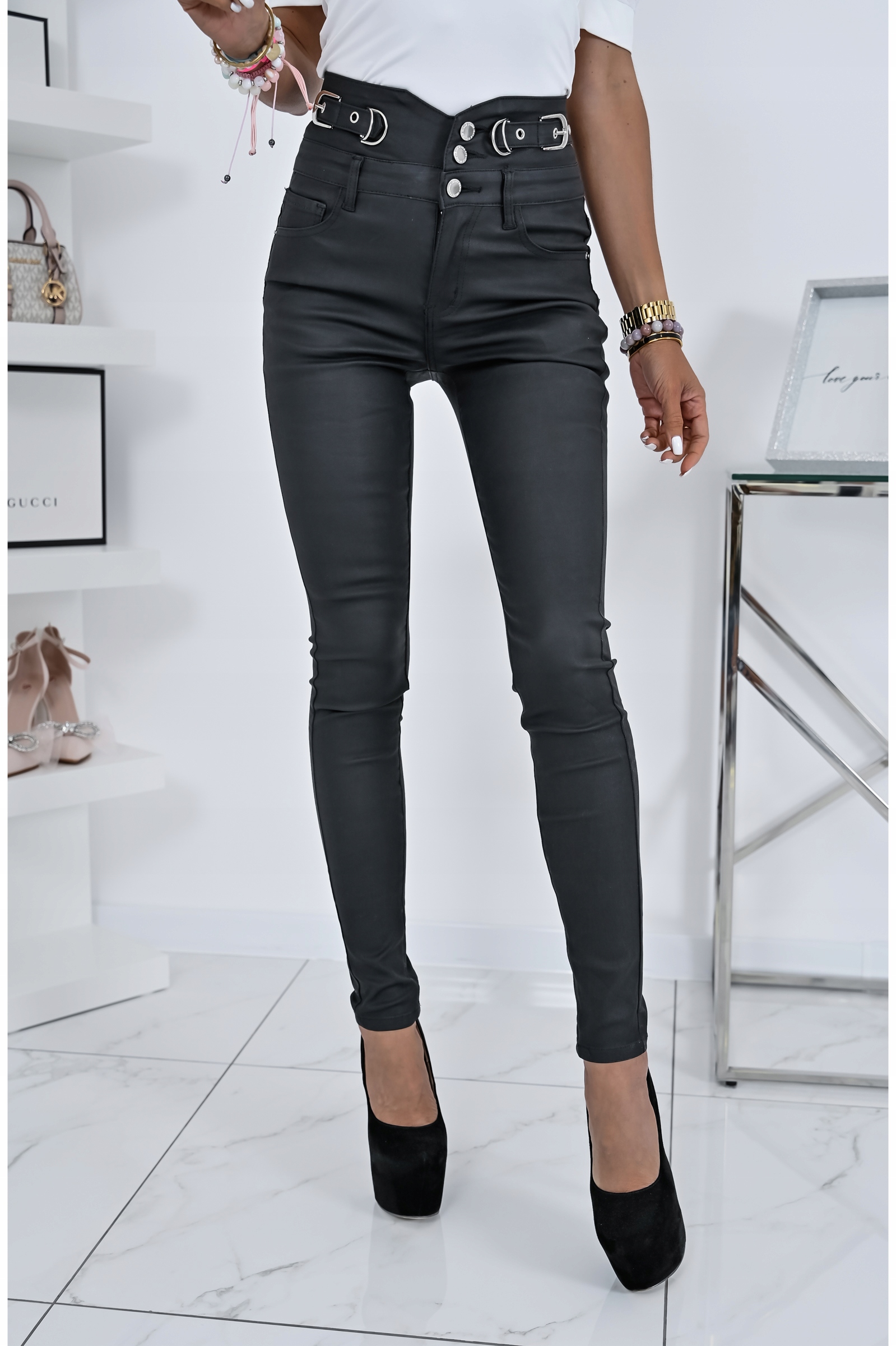 ZJAWISKOWE WOSKOWANE SPODNIE Z WYSOKIM STANEM! XS