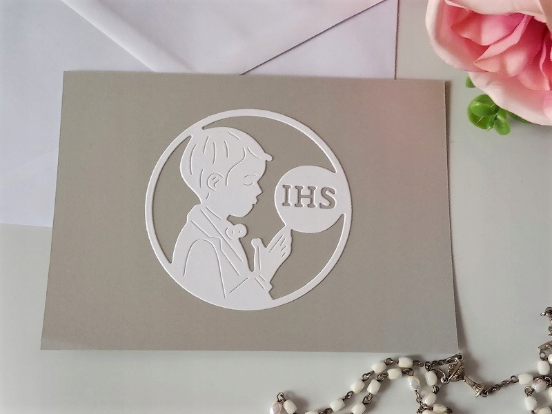 Елегантне, делікатне запрошення на Перше Святе Причастя з персоналізацією.