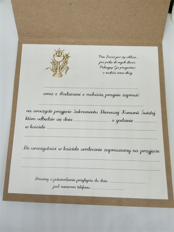 Оплачивая «ZK27B Запрошення до Святого Причастя з чашею», вы можете быть уверены, что данный товар из каталога «Свадебные приглашения, уведомления» будет доставлен из Польши и проверен на целостность. В цене товара, указанной на сайте, учтена доставка из Польши. Внимание!!! Товары для Евросоюза, согласно законодательству стран Евросоюза, могут отличаться упаковкой или наполнением.